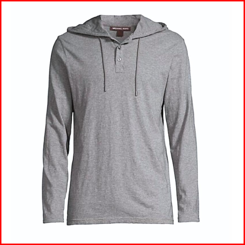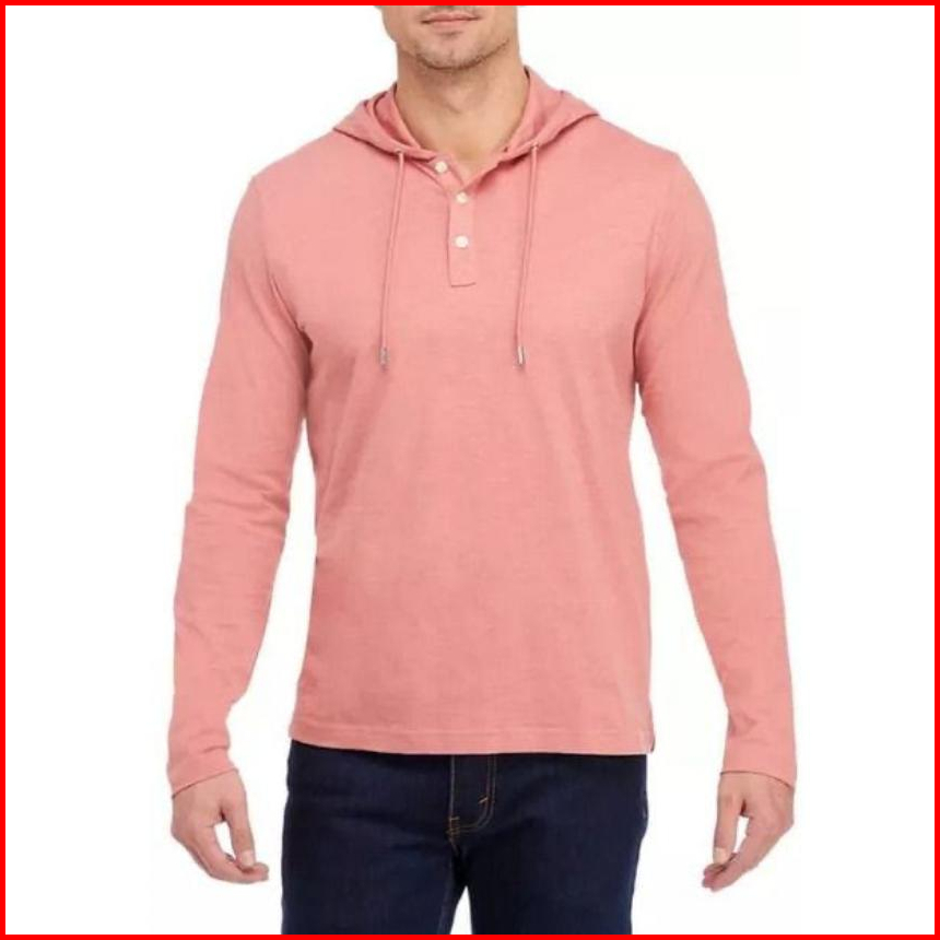 Baju Kaos Pria Lengan Panjang Polos Bertopi Memiliki Tiga Kancing Didepan Model Hodie Kupluk Henley