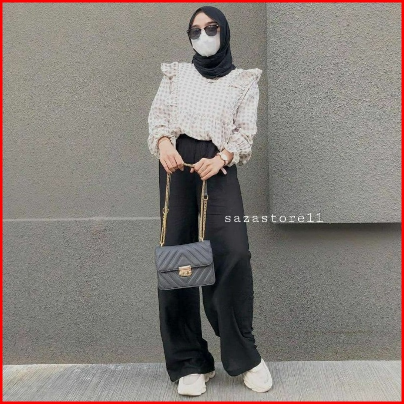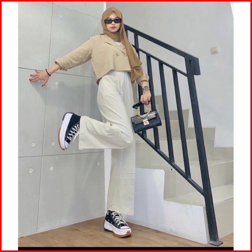 Kulot Linen Rami Highwaist Pinggang Karet Wide Leg Cullote