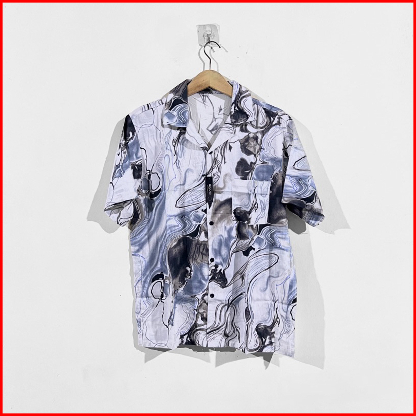 Kemeja Pria Hawai Kemeja Pantai Abstrak Casual Lengan Pendek