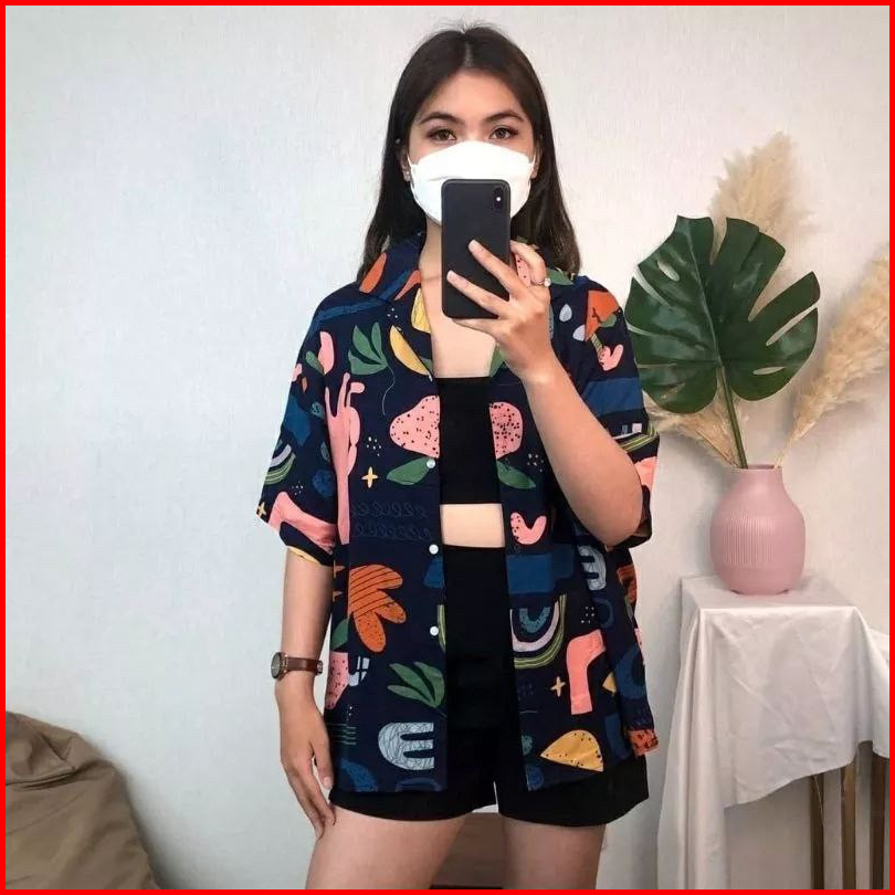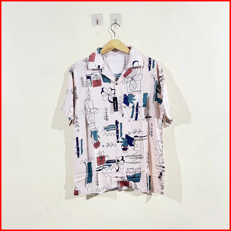 Kemeja Wanita Hawai L Kemeja Pantai Abstrak Casual Retro Bahan Rayon