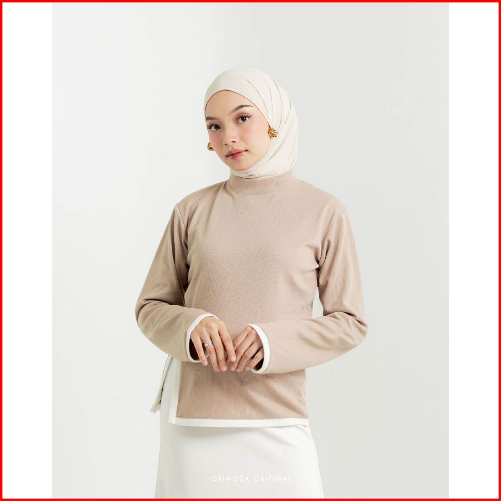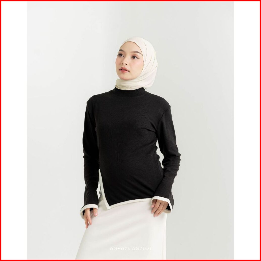 Orimoza Nola Blouse List Putih Belah Samping Bahan Snowrib