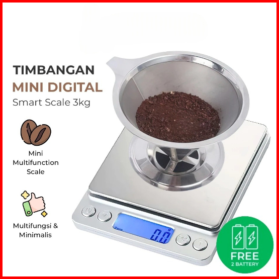 Timbangan Scale 3kg 0.1gr Kotak Digital Kopi Bumbu Dapur Platform Dengan Lampu Backlight Biru