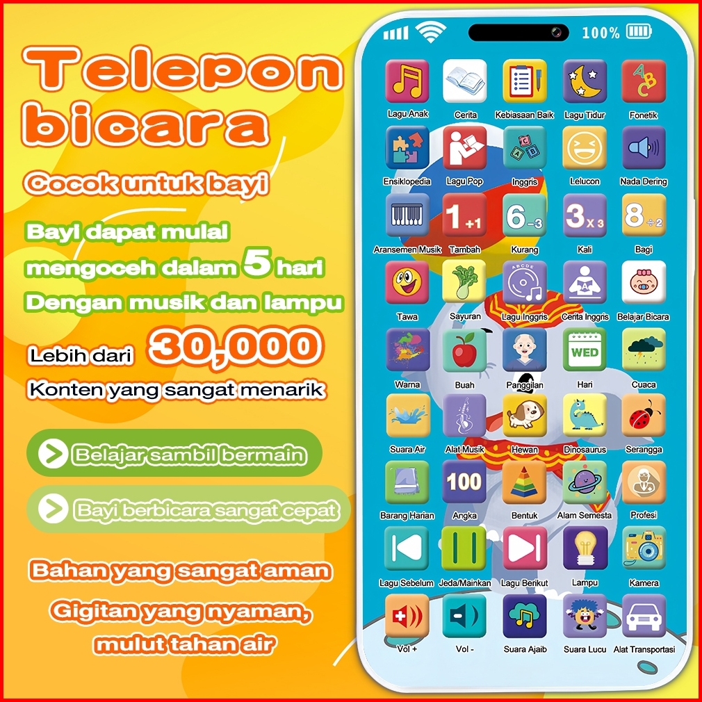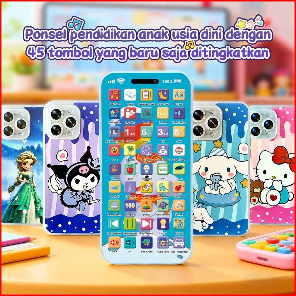 Ponsel Mainan Anak Ponsel Mainan Edukasi - Mainan Musik Interaktif 100 Konten Lampu Led Lagu Pengantar Tidur Suara Hewan