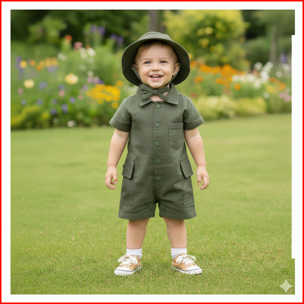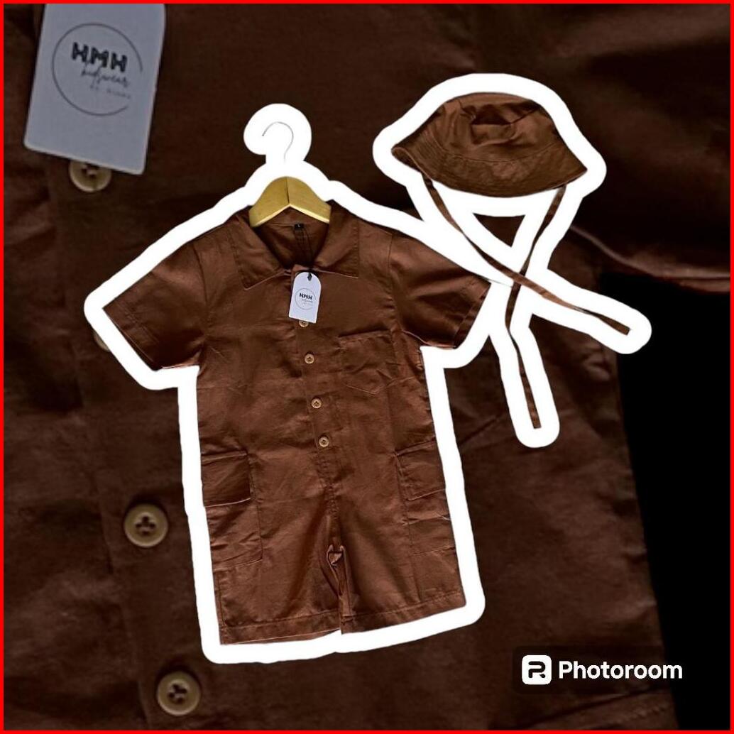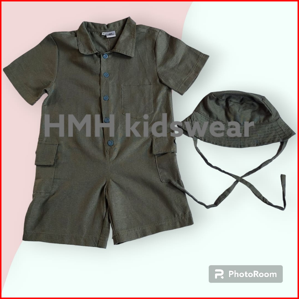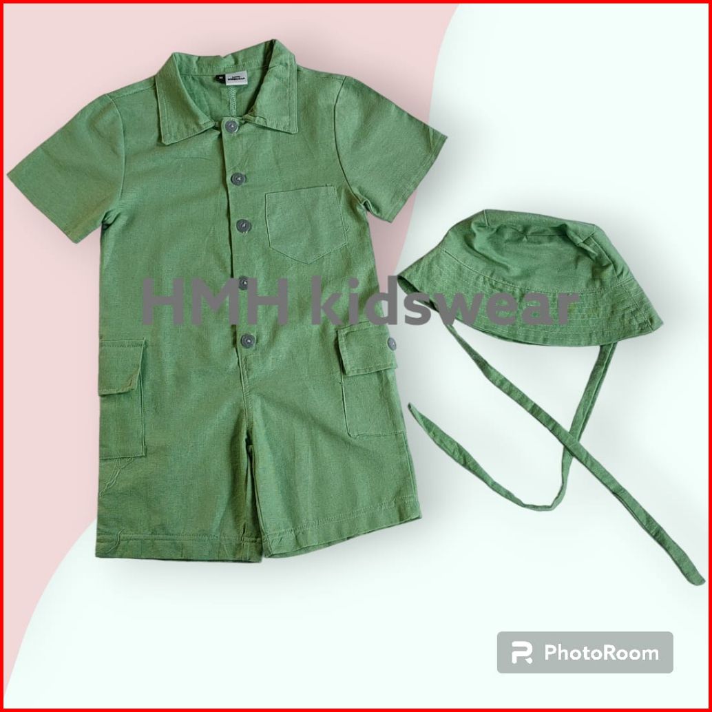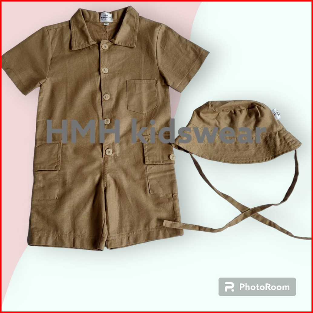 Coverall Set Topi Anak Jumsuit Topi Jumper Topi Usia 1-5 Tahun Bahan Linen Rami