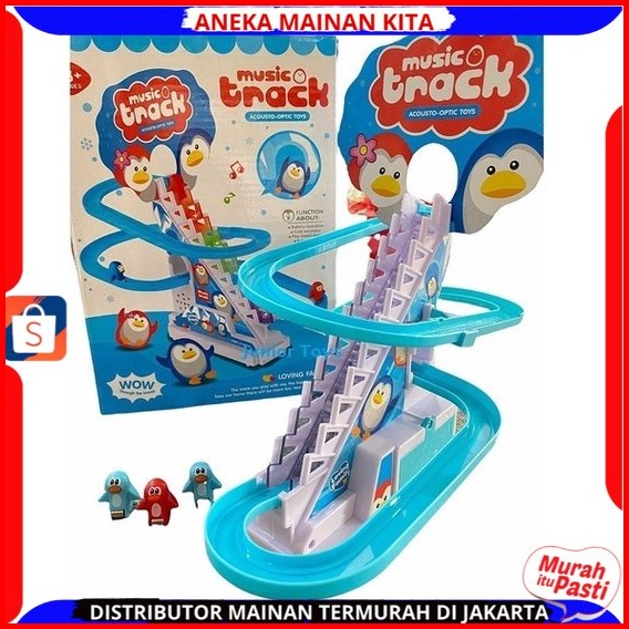 Mainan Track Tangga Berjalan Bebek Penguin Memanjat Dengan Musik Berlampu Mainan Bayi Edukasi Anak