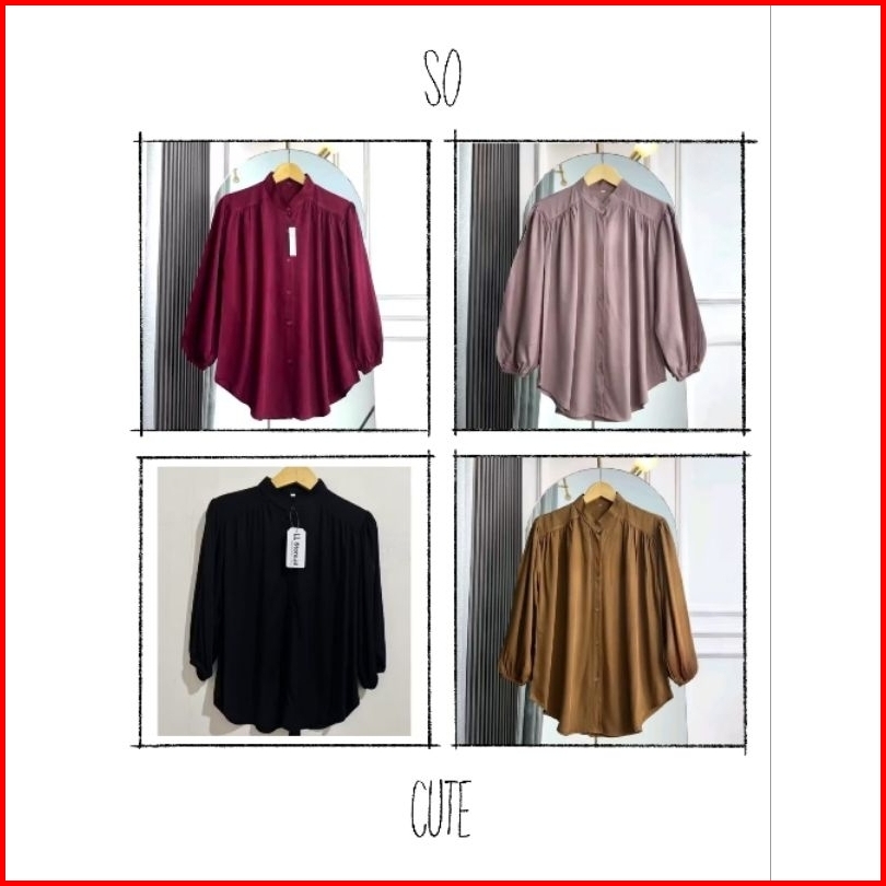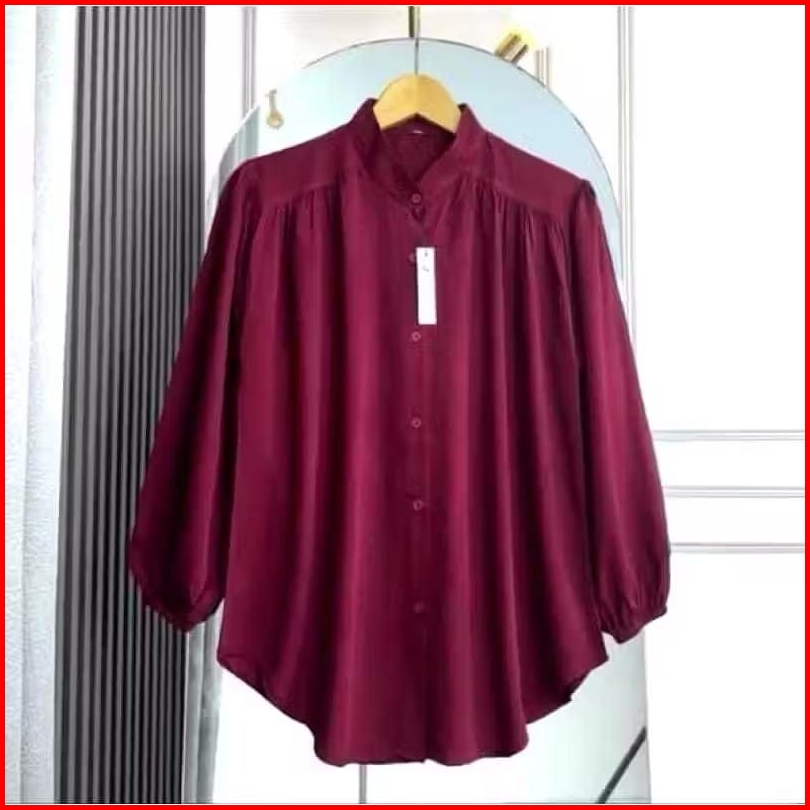 Amena Kemeja Wanita Jumbo Rayon Twill Lengan Panjang Karet Polos Premium