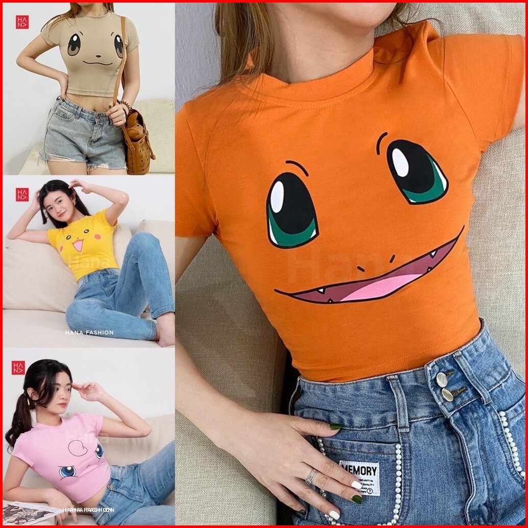 Kaoa Crop Top Pikacu Face Pokeemon Kaos Crop Oversize Original