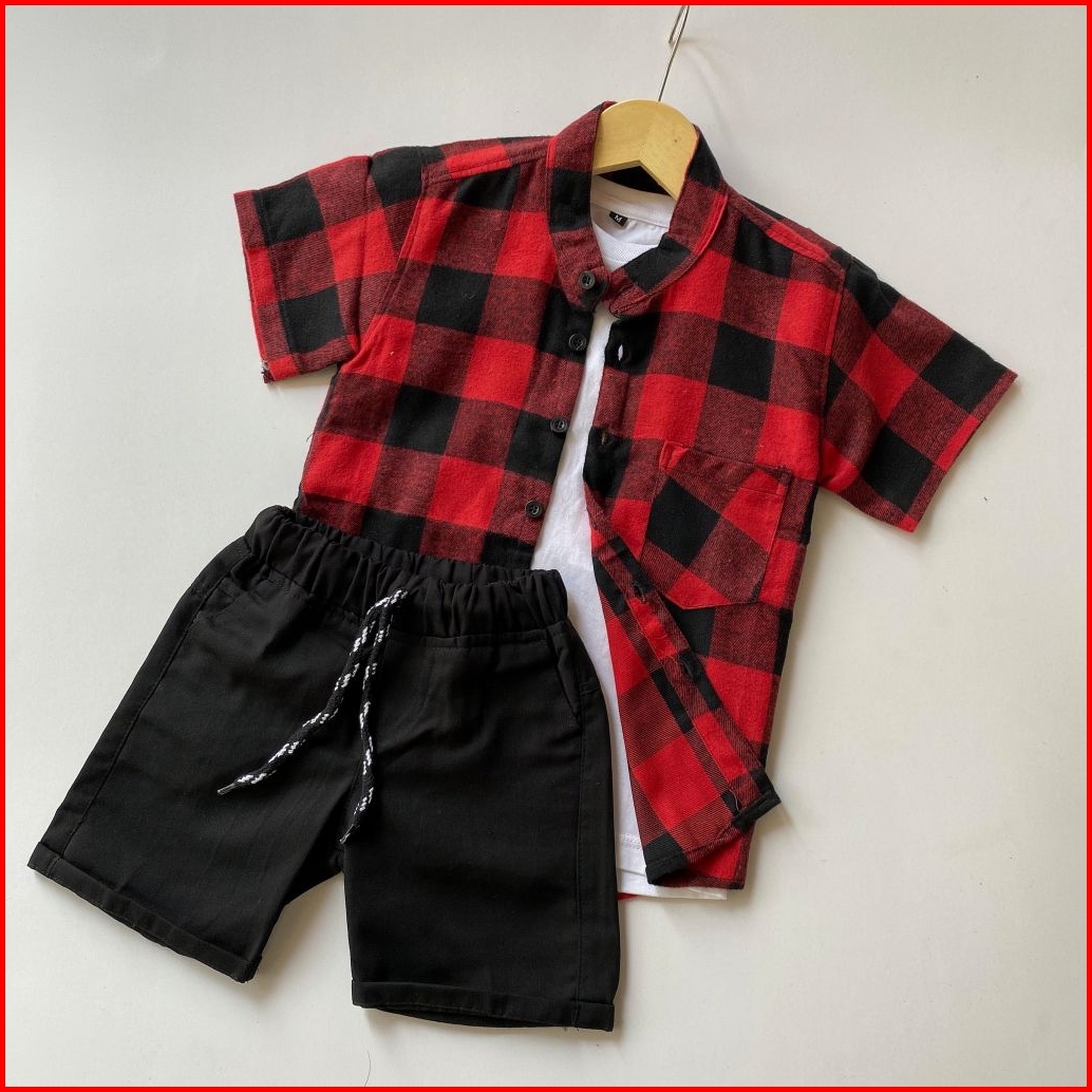 Setelan Anak Laki Laki Kemeja Flanel Celana Broadshort Twill Union Usia 1 - 5 Tahun