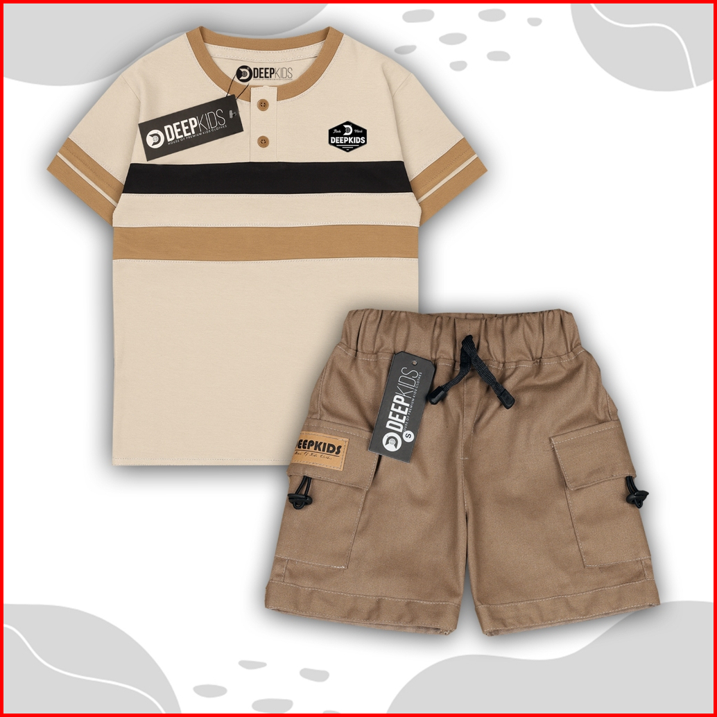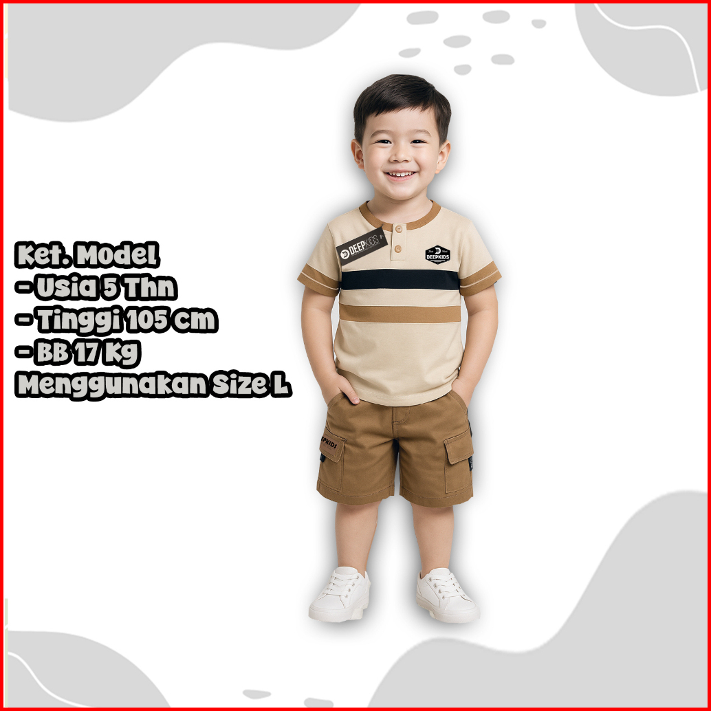 Deepkids Setelan Anak Laki Laki Kaos Kerah Kancing Celana Cargo Pendek Bahan Cotton Combed 24s Cotton Twill Usia 1 2 3 4