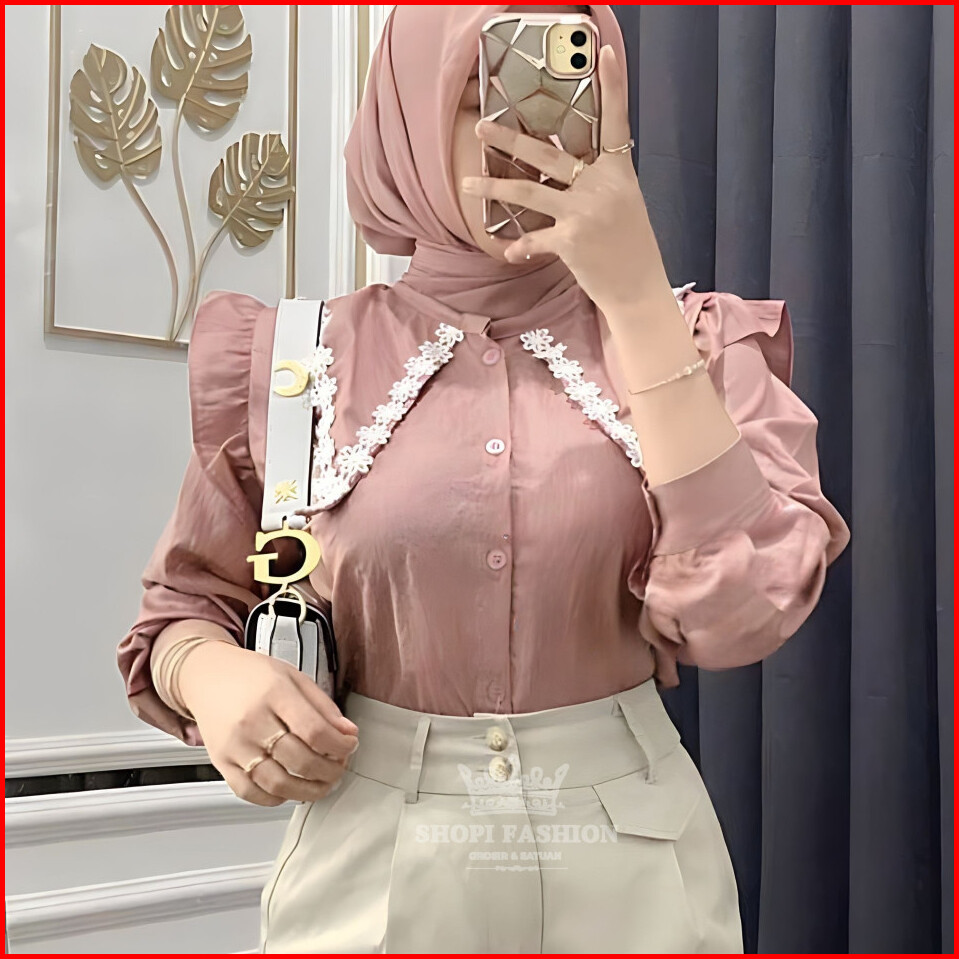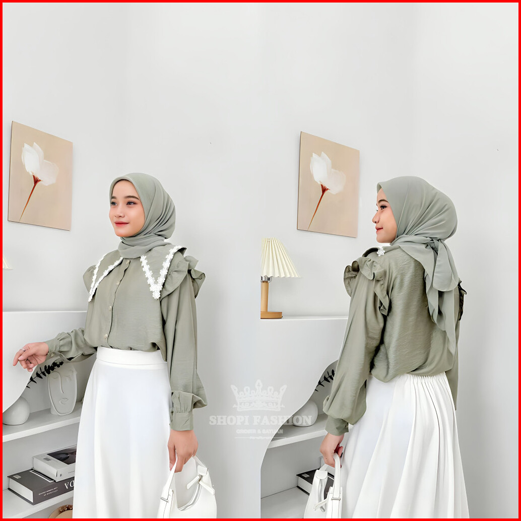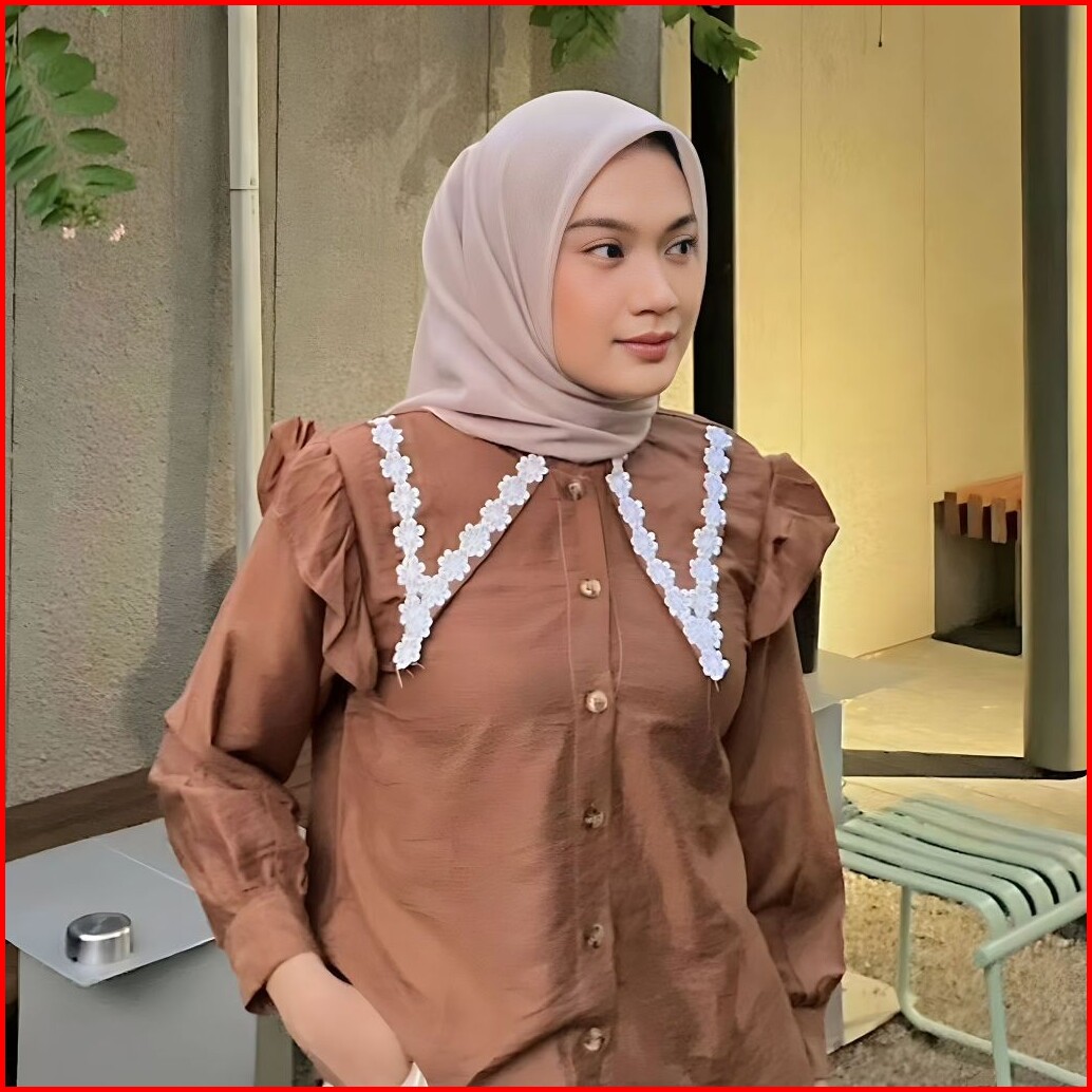 Blouse Mony Leora Kerah Sailor Kemeja Wanita Lengan Renda Panjang