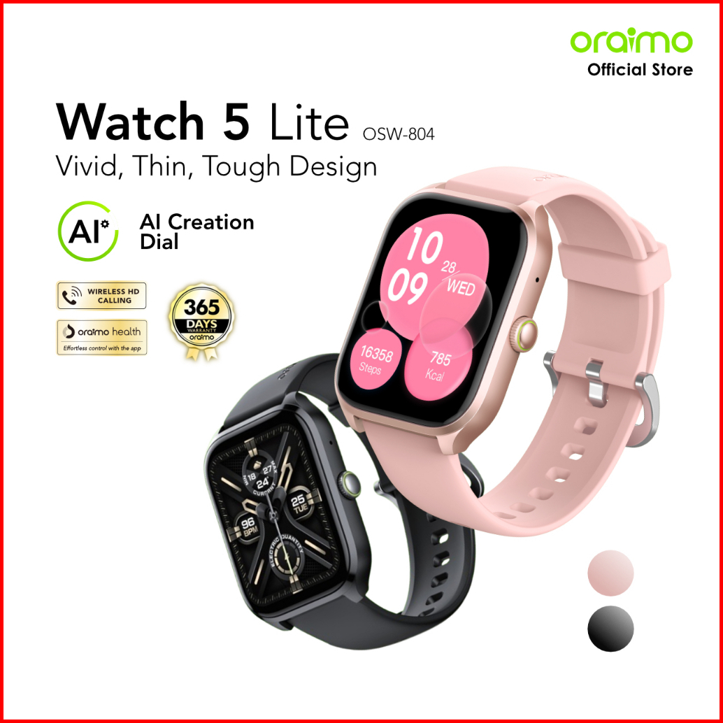 New Launching Oraimo Watch 5 Lite Smartwatch Osw-804 Jam Tangan Pintar Layar Besar 2.01 Bluetooth Baterai Tahan Lama Tah