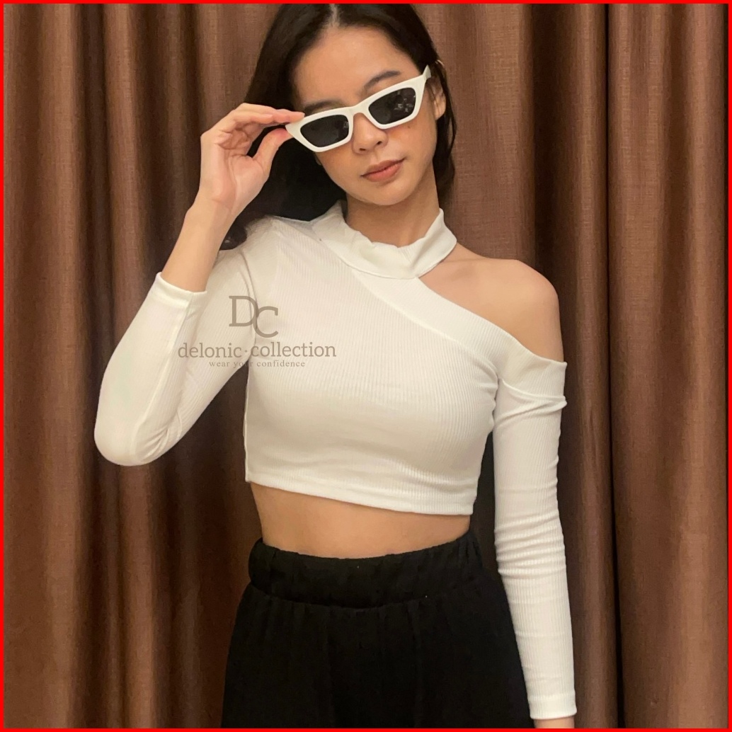 S To Xxl Lucretia Halter Crop Top Longsleeve Rib Knit Tank - Atasan Baju Rajut Tanktop Wanita Croptop Kaos Tee Lengan Pa
