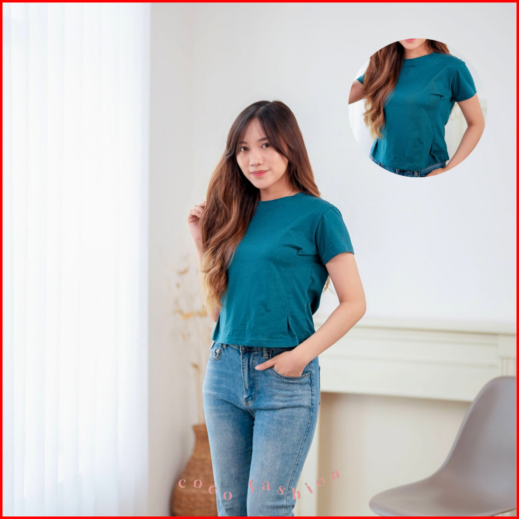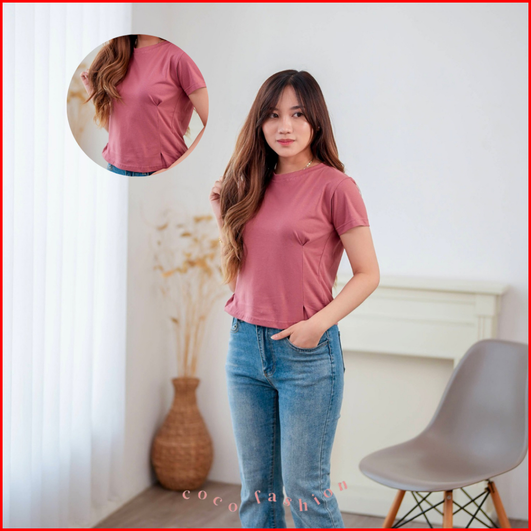 Atasan Wanita Kaos Lengan Pendek Fitted Shirt Style Samping Riana Top Cotton Combed Premium Size M L Xl Basic Daily Outf