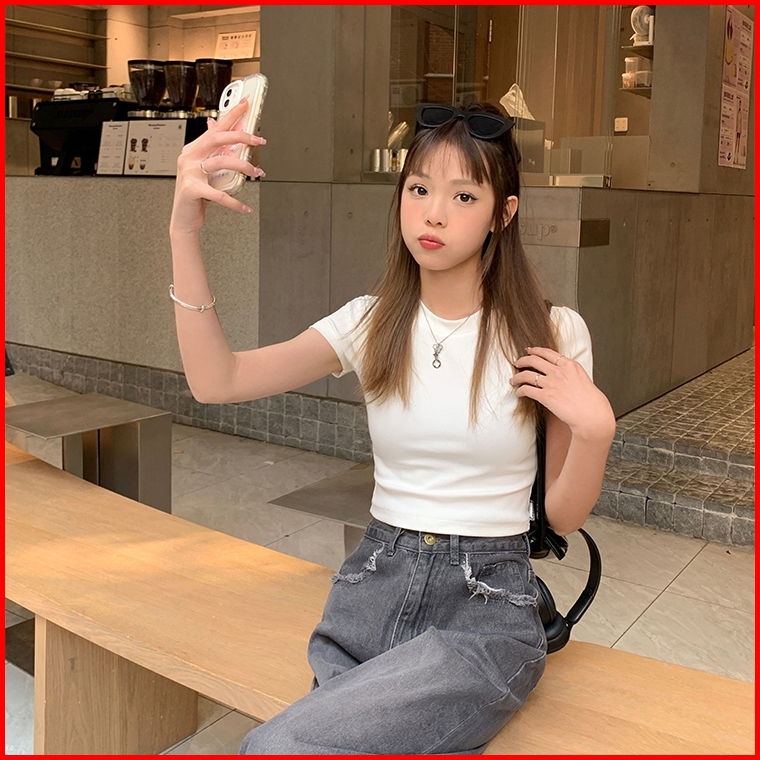 Misco T-shirt Crop Top Polos Lengan Pendek Kaos Wanita Crop Top Korea Kaos Crop Wanita Kekinian Baju Atasan Wanita Terba
