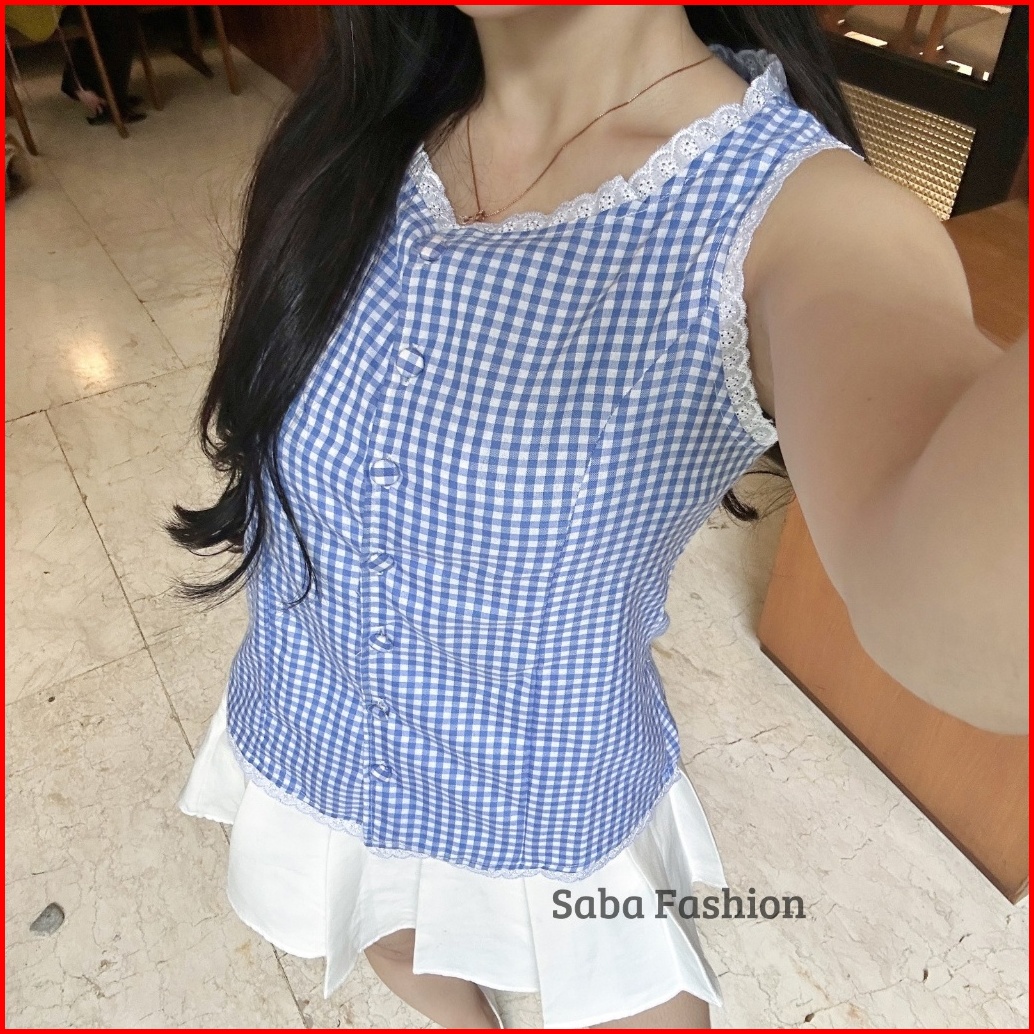 Pricila Lace Vest Vest Atasan Stripe By Saba Fashion