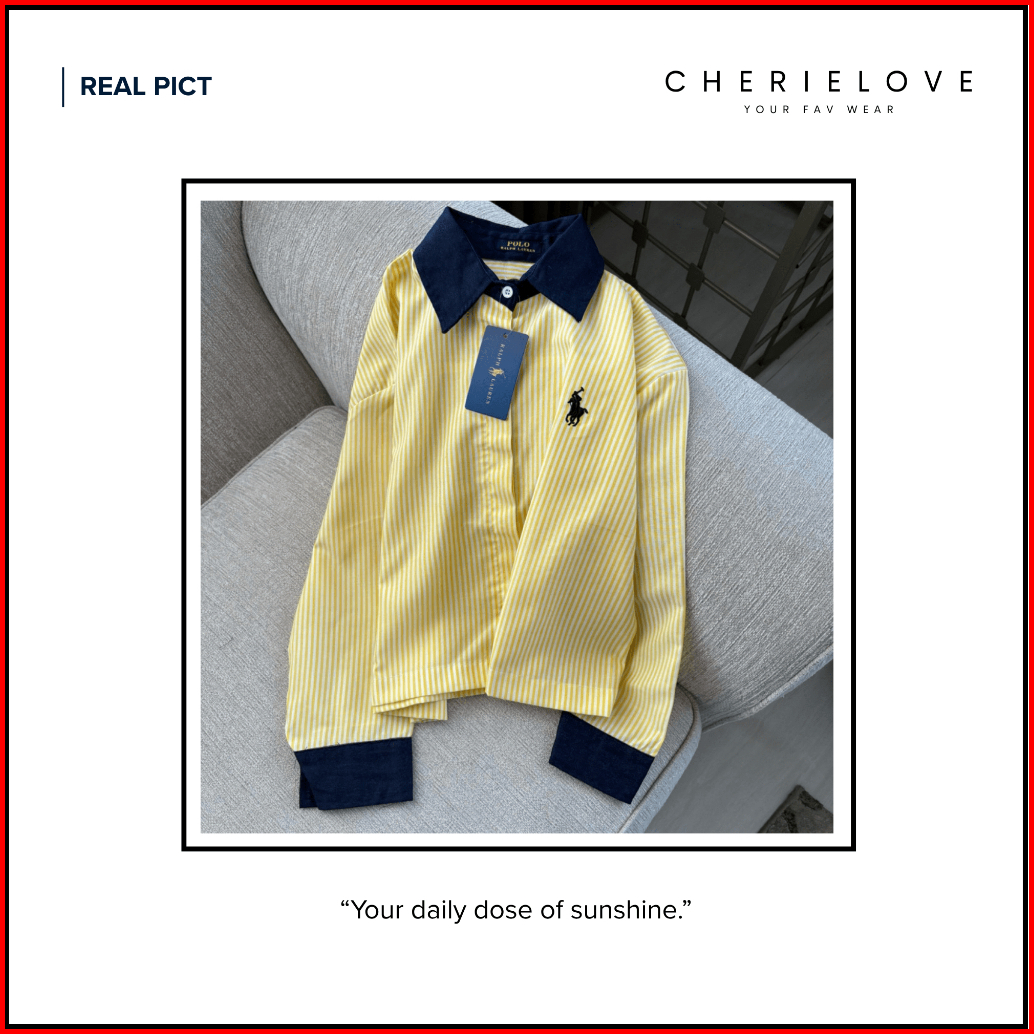 Olop Stripe Kemeja Croptop Mix Denim - Atasan Wanita Premium Tangan Panjang