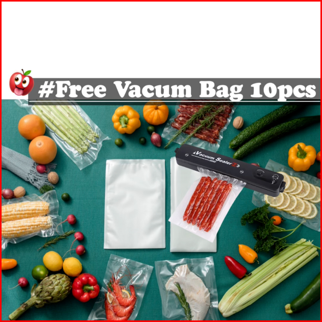 Free 10pcs Plastik - Mesin Vacuum Sealer Makanan Alat Vakum Dan Penyegel Pengemas Otomatis