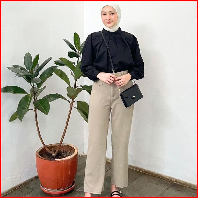 Oro Pants Celana Kulot Highwaist Loose Pantstrousers - Celana Kulot Wanita Anti Kusut Knit Premium