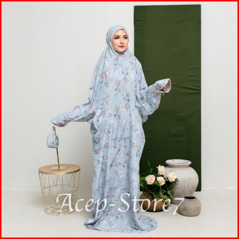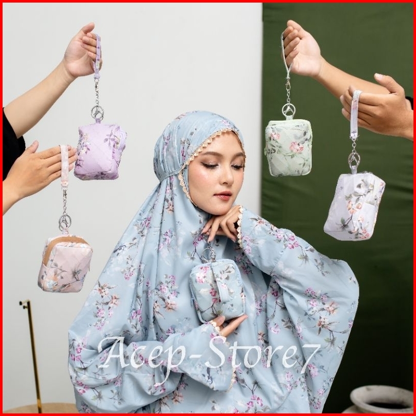 Mukena Treveling Terusan Resleting Mini Pouch Parasut Motif Premium