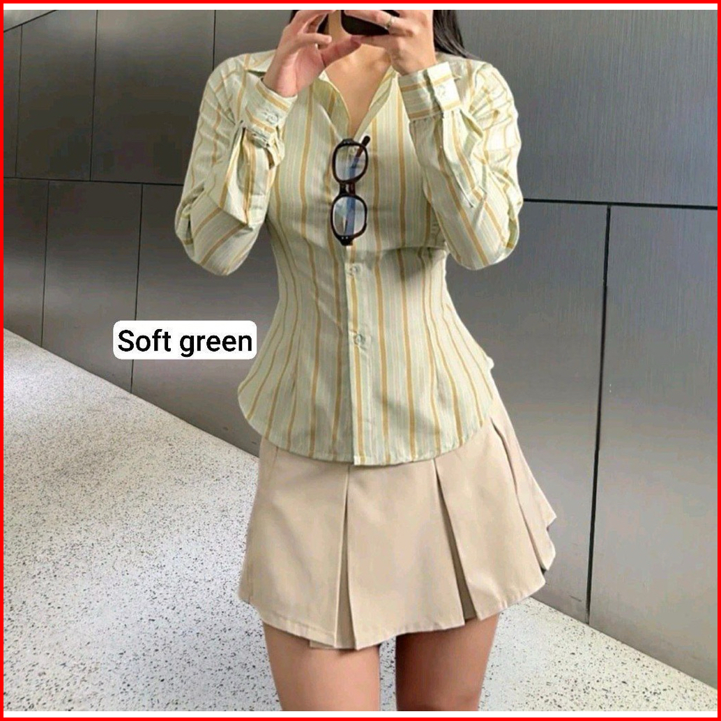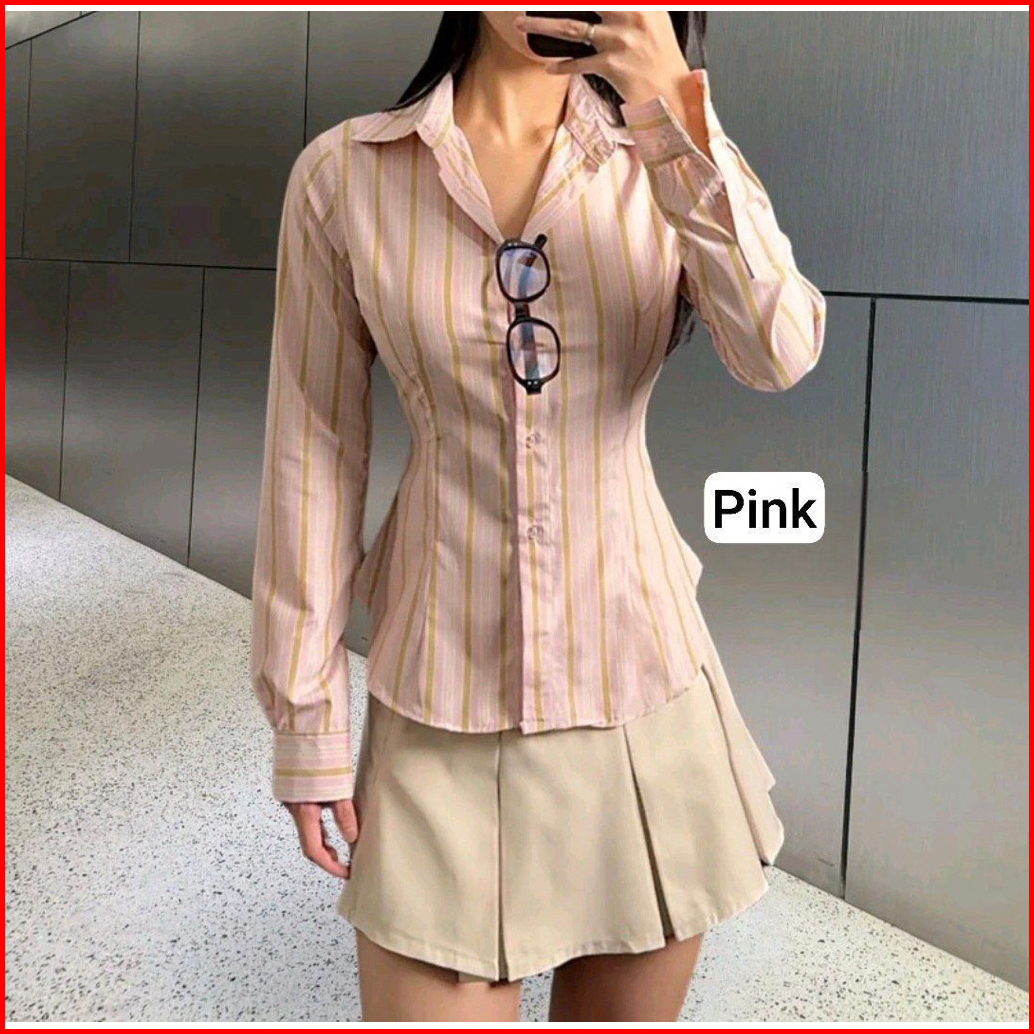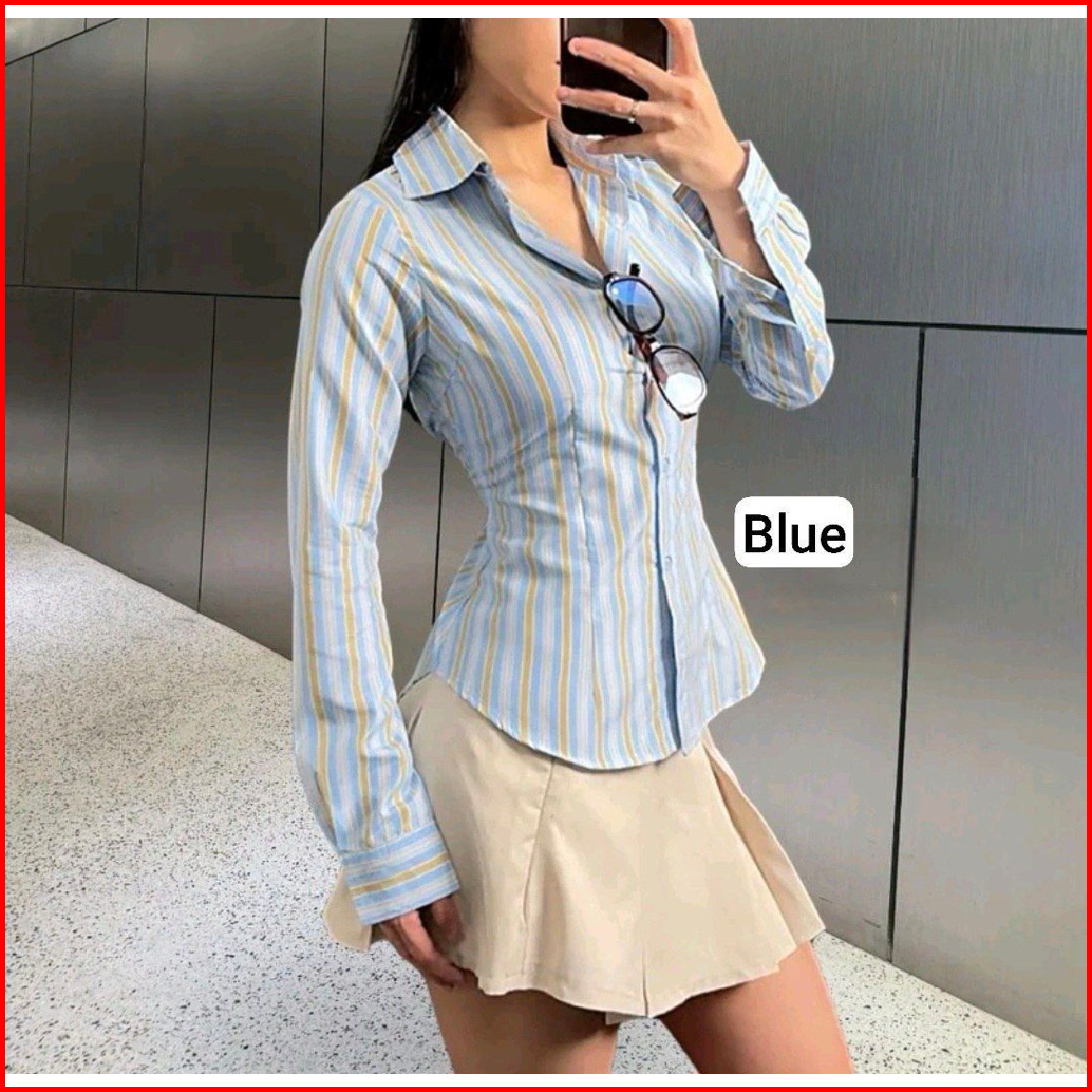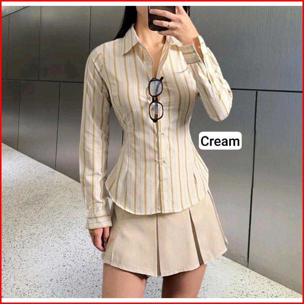Luna Looks Wispie Stripe Fitted Shirt - Kemeja Wanita - Atasan Wanita Stripe Salur - Kemeja Basic Lengan Panjang - Kemej