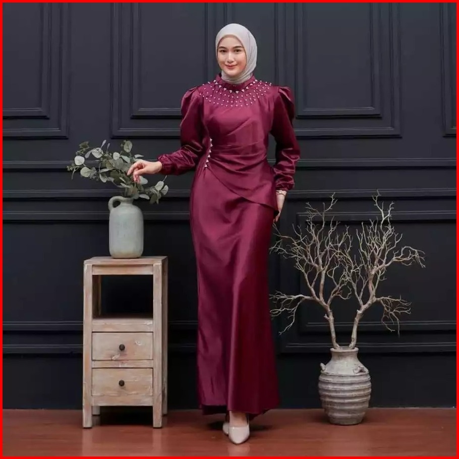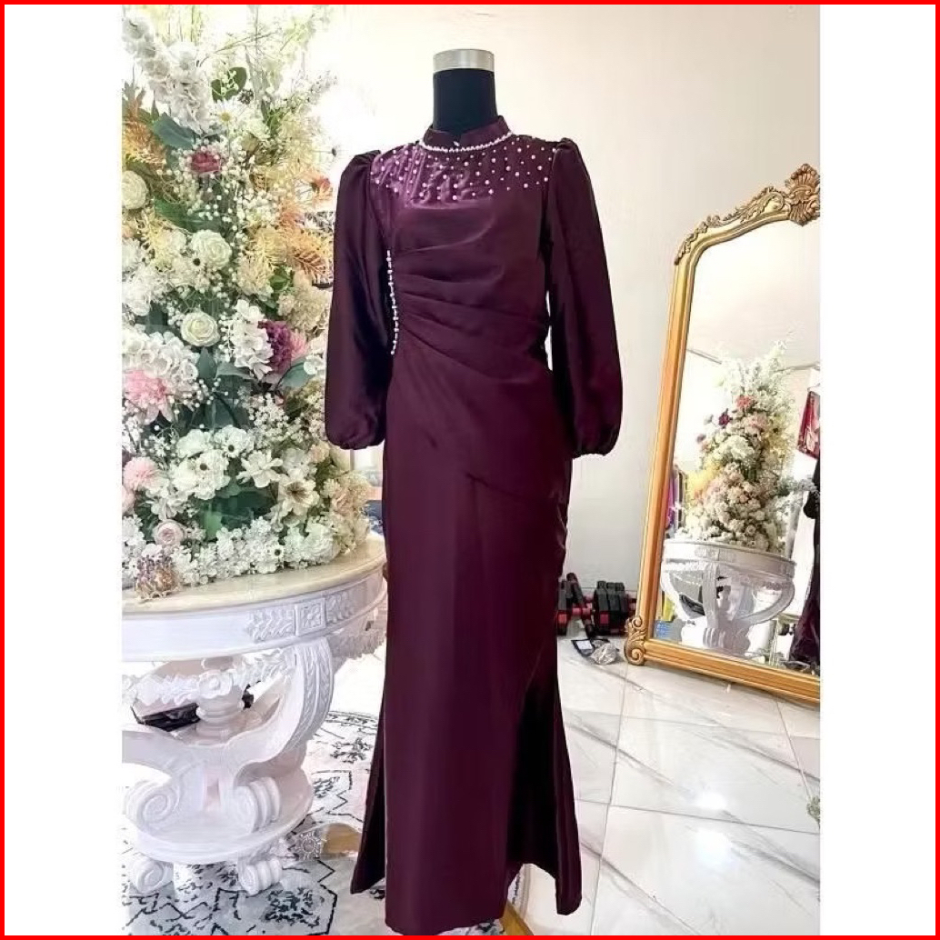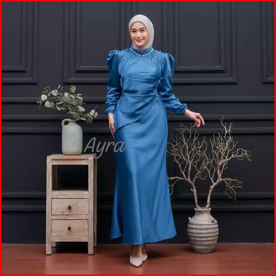 Vina Dress Satin Silk Premium Wanita Kondangan Muslim Body Fit Viral Mermaid 2025
