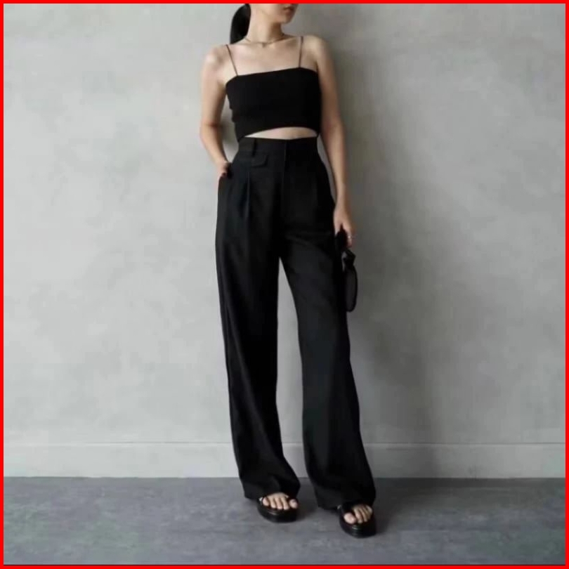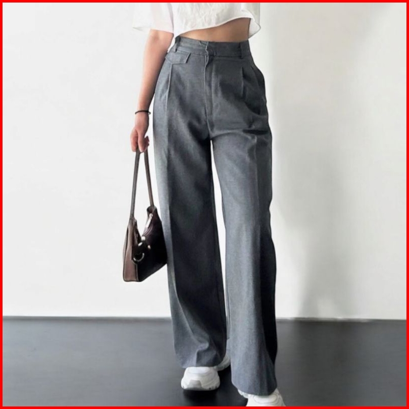 Ifstore - Celana Oro Pants Kulot Knit Loose Highwaist Trousers Wanita - Celana Kantor Wanita Premium