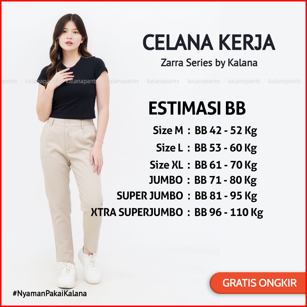 Celana Kerja Wanita Bb 40kg Sampai 100kg Celana Kerja Kantor Kain Bahan Original By Kalana