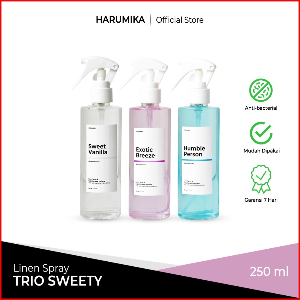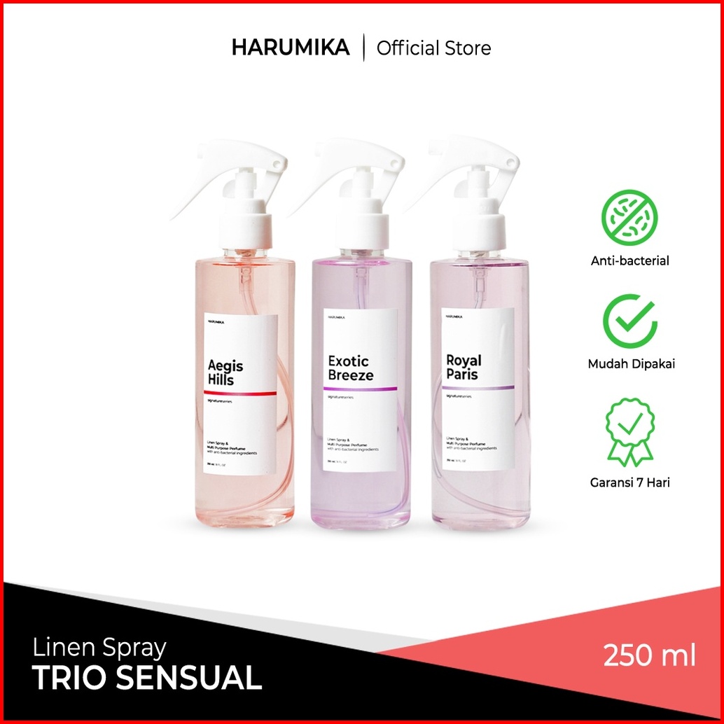 Paket Trio Rekomendasi Isi 3 - Harumika 250ml Linen Spray Room Refresher Anti Bacterial