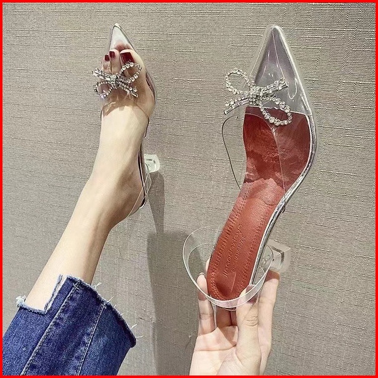High Heels Wanita Cantik Sandal Pesta Kekinian Hak Kaca Runcing Chintya