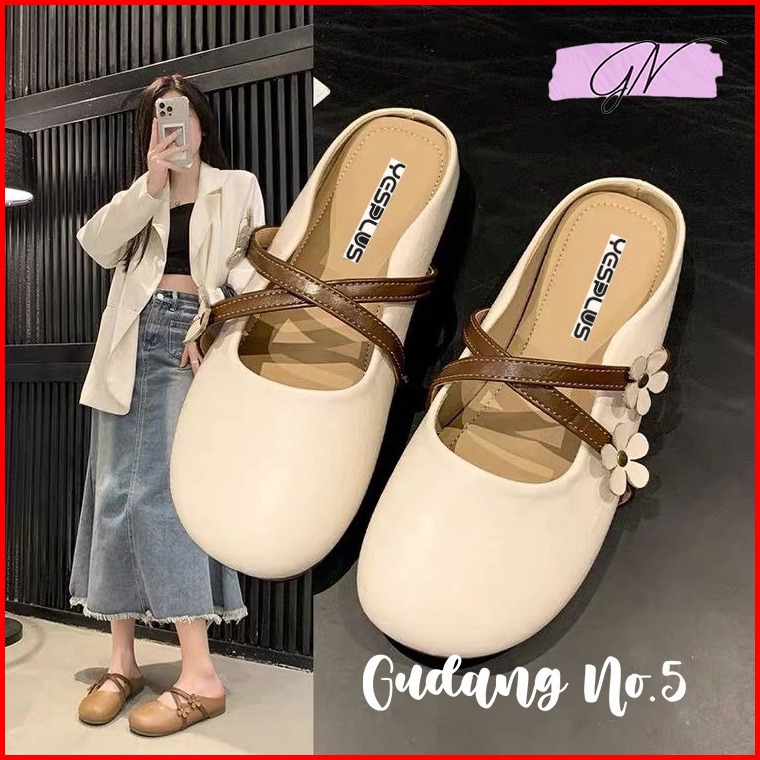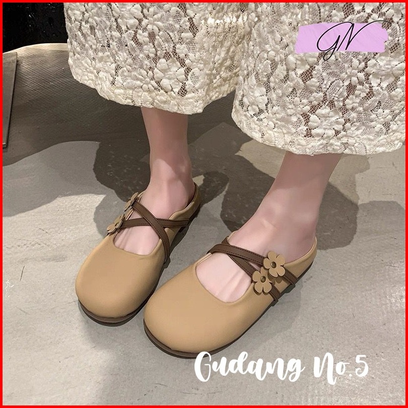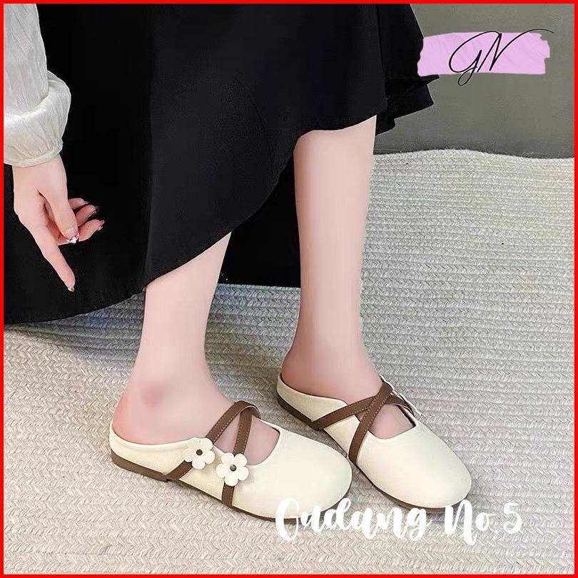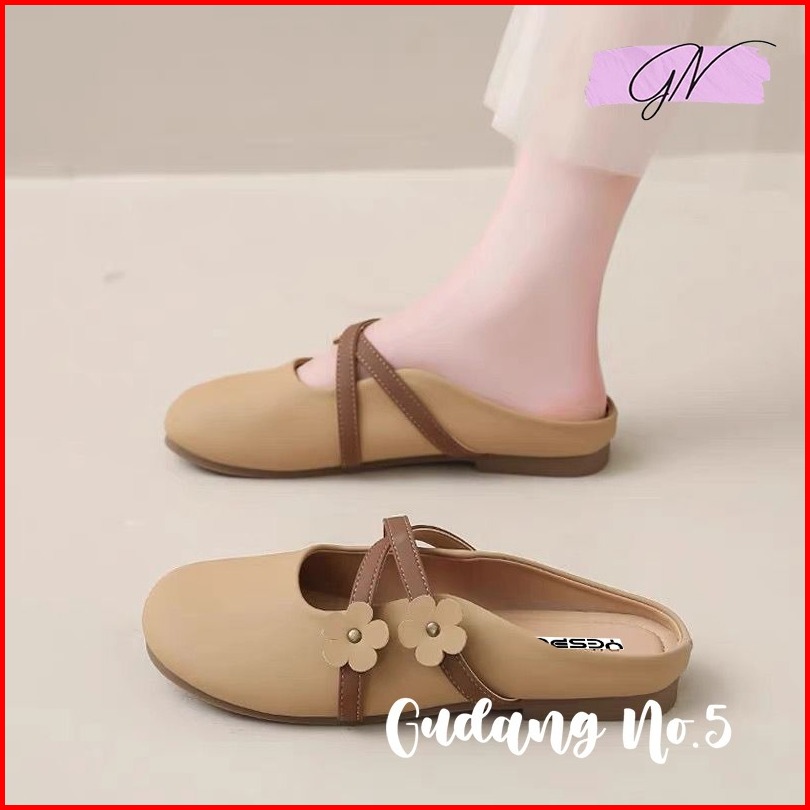 Gn-831 Flatshoes Jelly Wanita Import Slop Flat Matte Bunga Antislip Fashion Balerina Terbaru