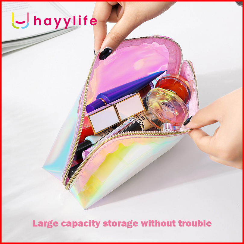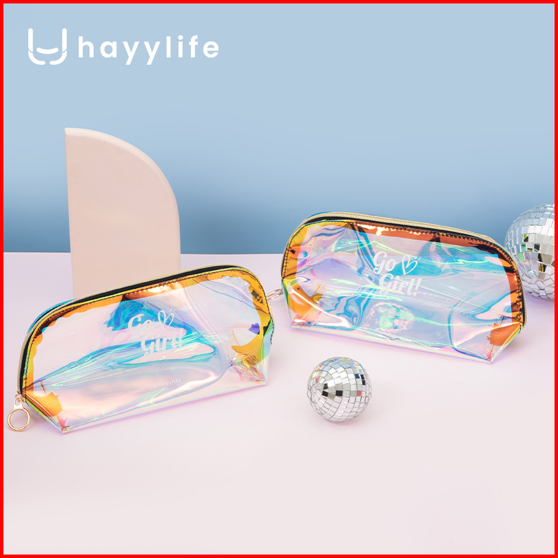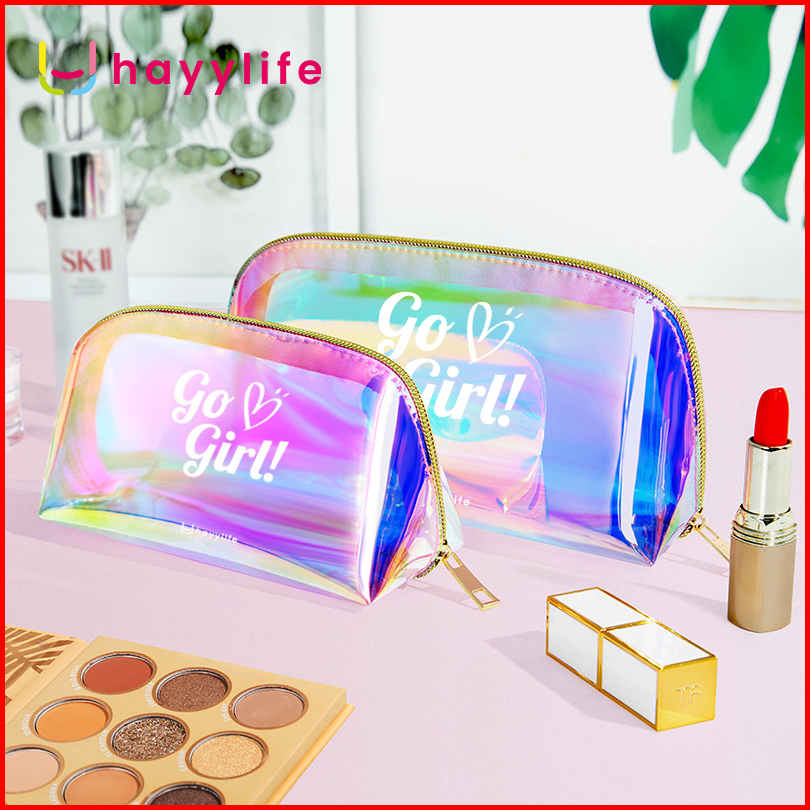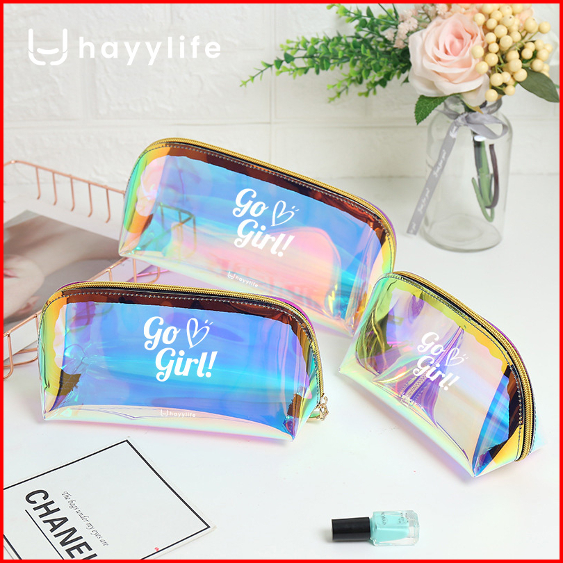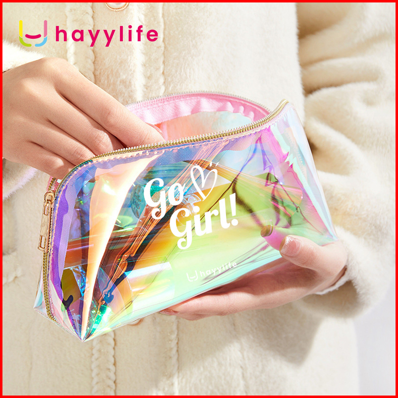 Hayylife Tas Pouch Kosmetik Hologram Model Transparan Bahan Plastik Untuk Travel Anti Air Hl-agb824