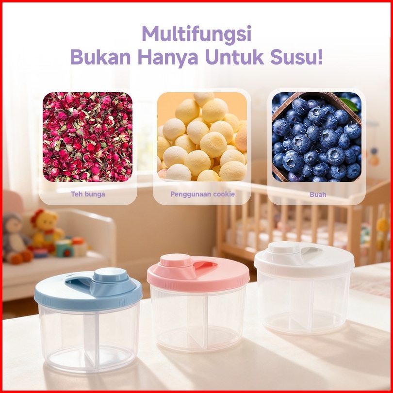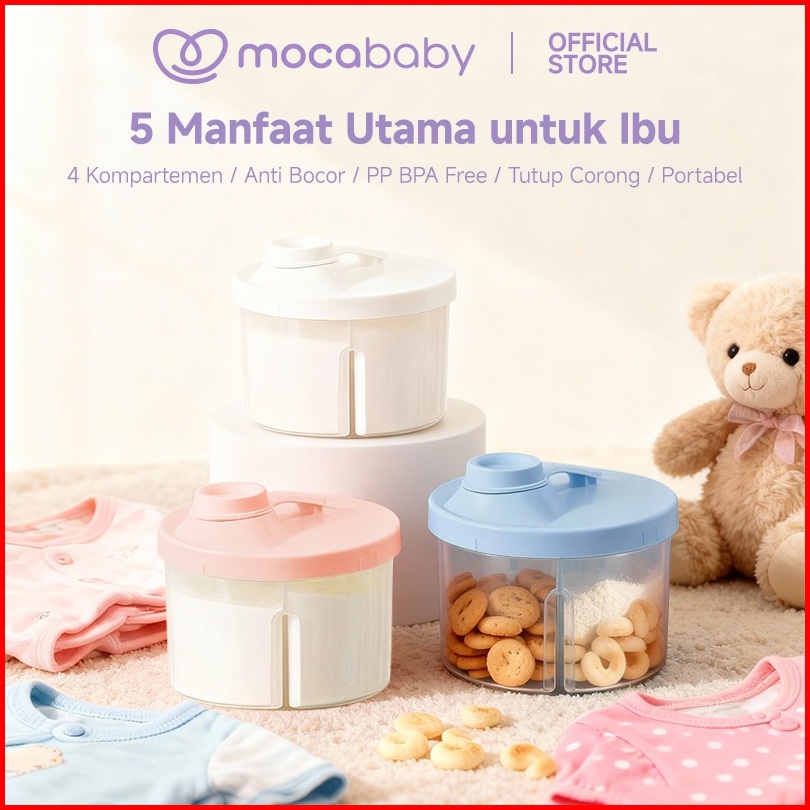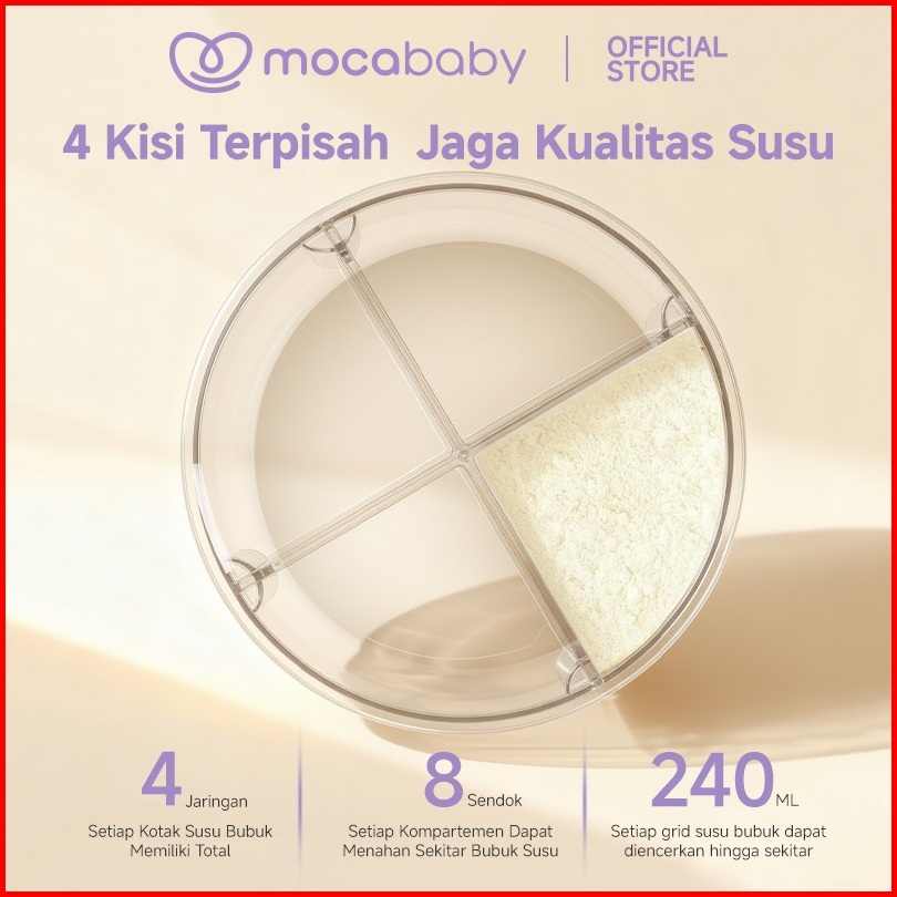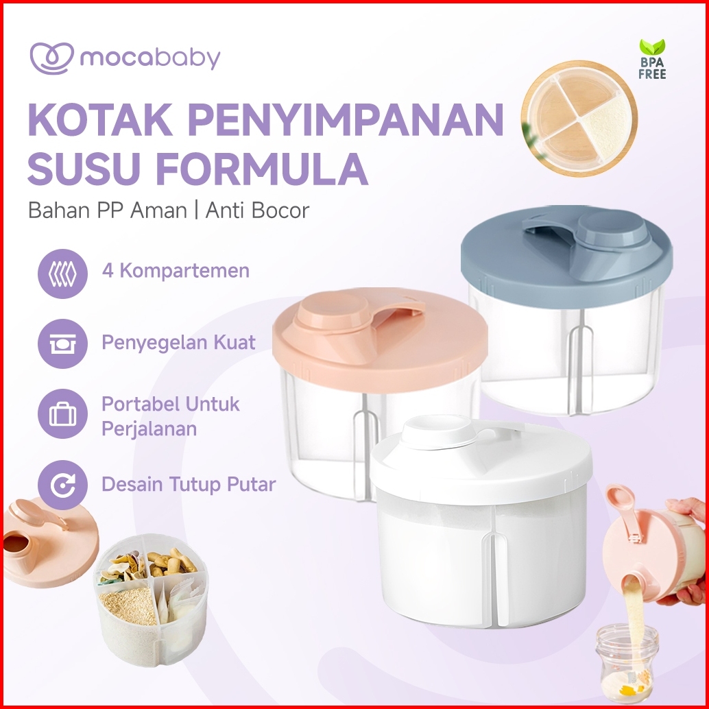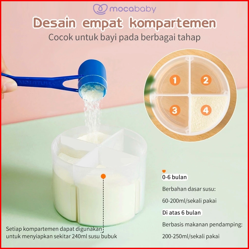 Mocababy Tempat Susu Bubuk Bayi 4 Sekat Kotak Susu Bubuk Bayi Portabel Milk Powder Container Dapat Diputar Kotak Penyimp