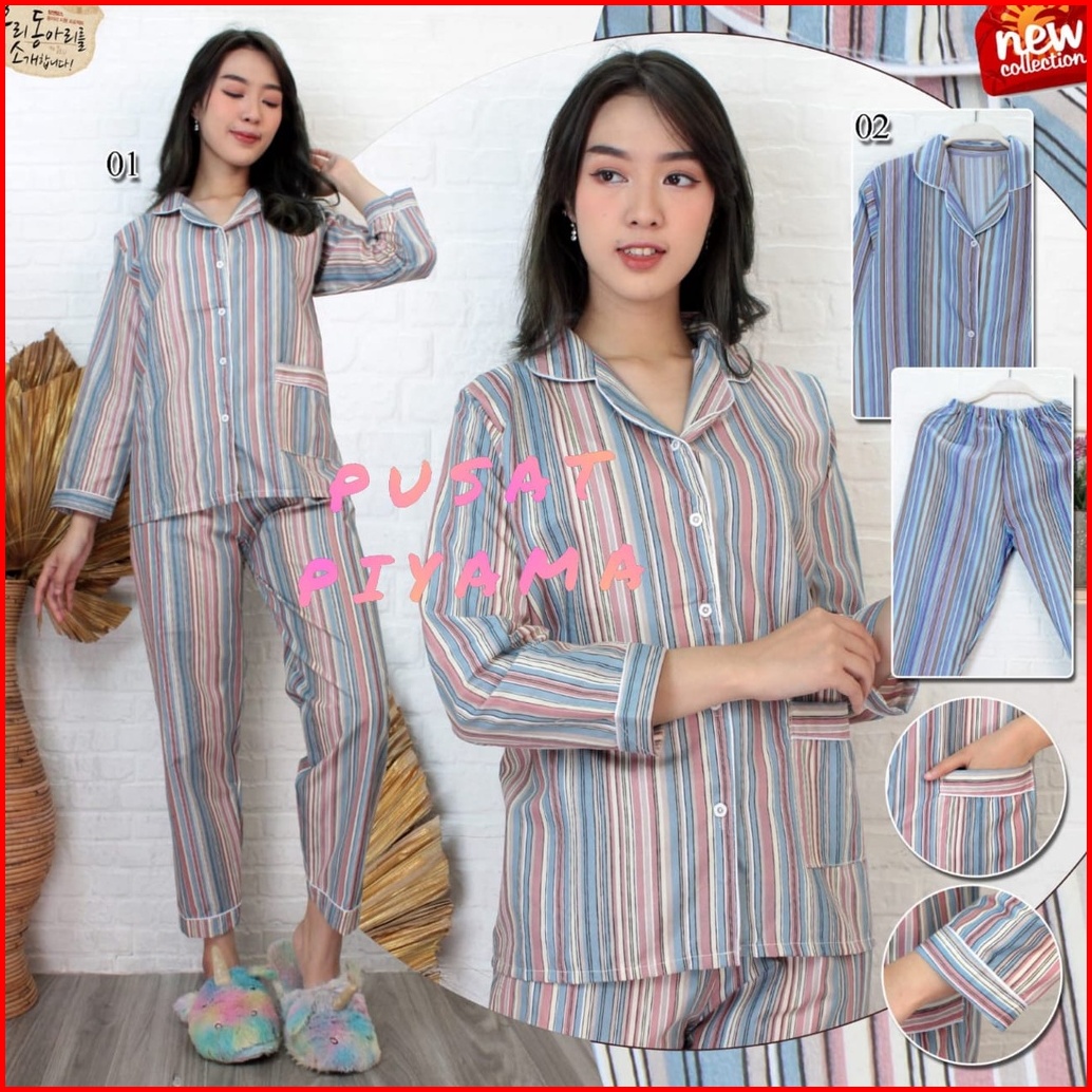 Piyama Baju Tidur Wanita Motif Candy Salur Pajamas Dewasa Cewek Abg Kekinian
