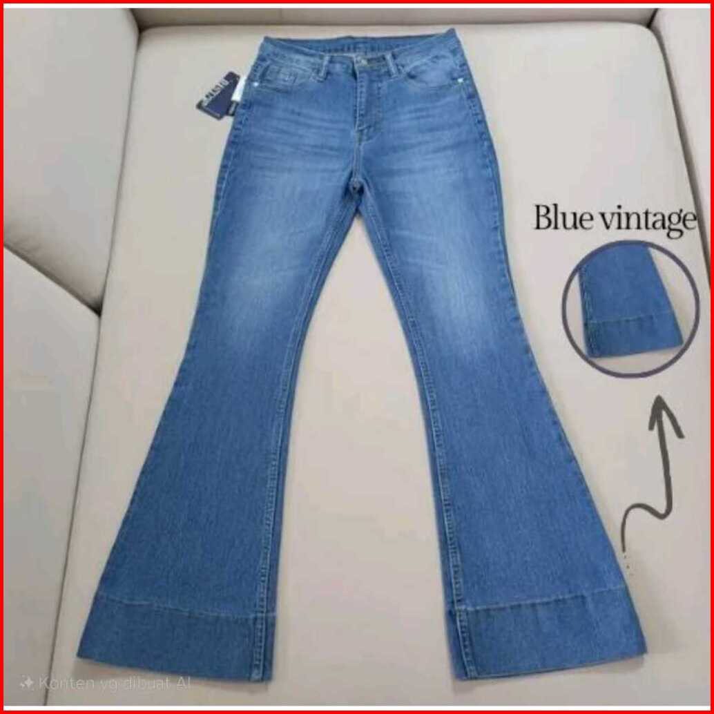 Jennie-highwaist Cutbray Jeans Celana Flare Panjang Stretch Wanita Retro Vintage Lipat Bawah Lebar