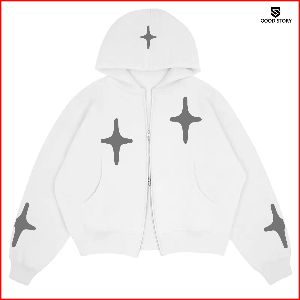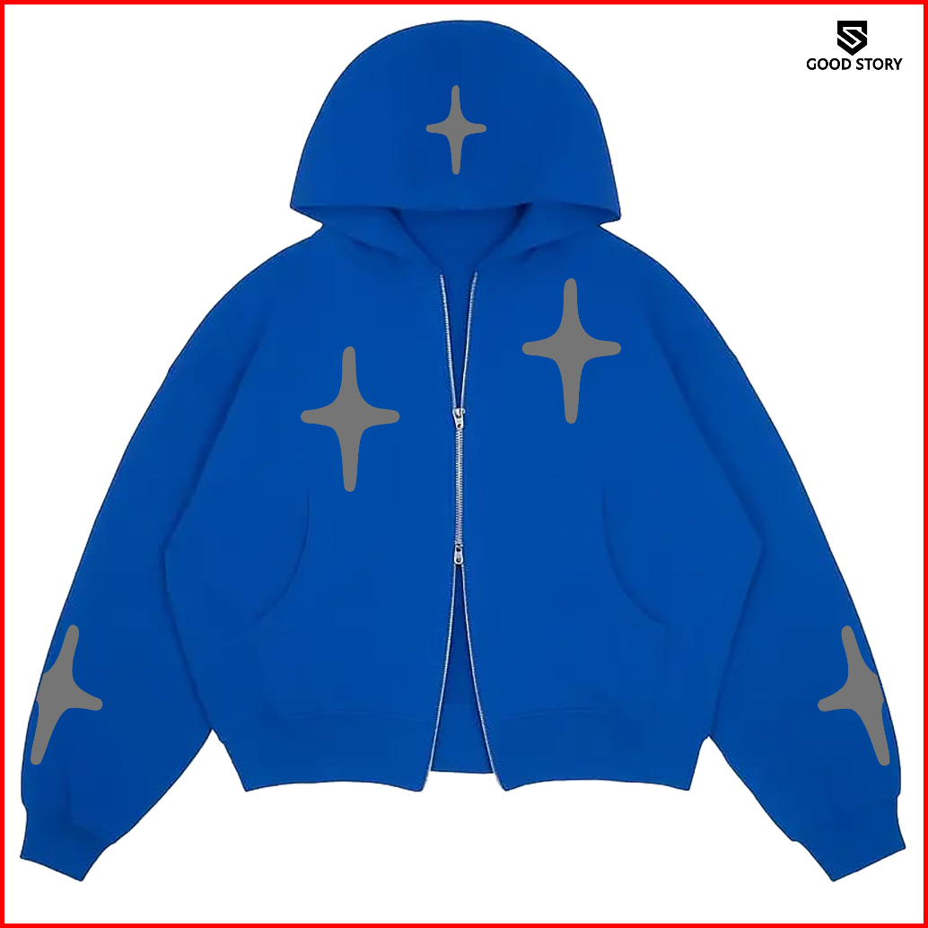Double Zipper Hoodie Boxy Stars Bahan Tebal Fleece 280 Gsm Pria Wanita Size M - Xxl