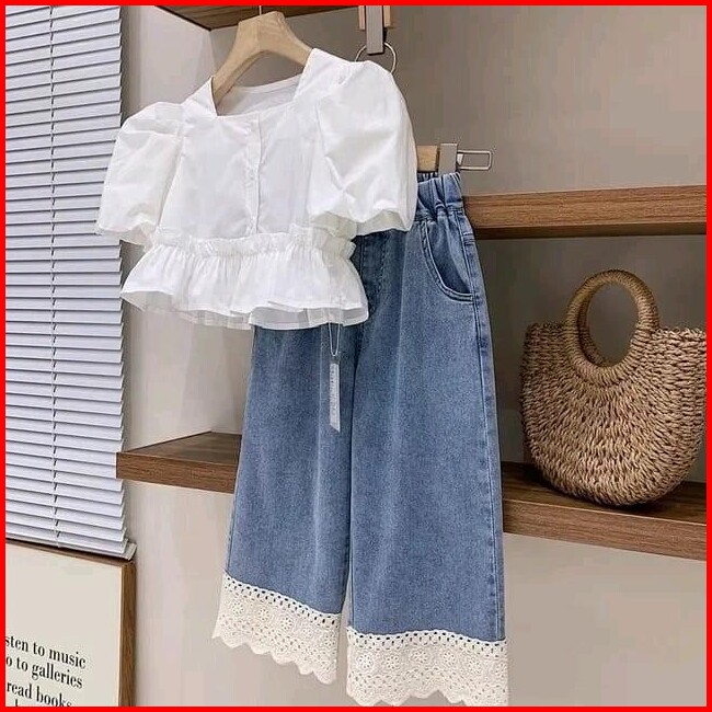 Raenakids Setelan Anak Perempuan Sabrina Midi Celana Jeans Fahion Anak Perempuan 1 - 12 Tahun Parsel