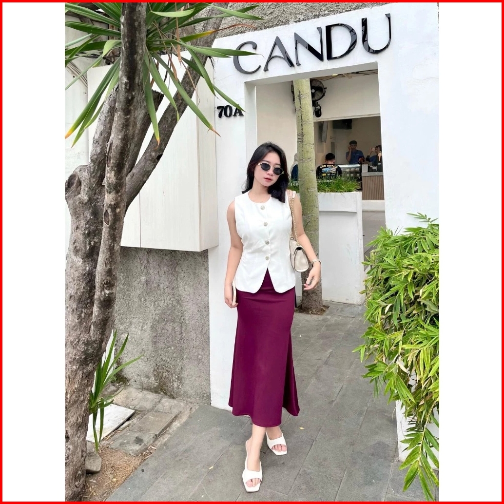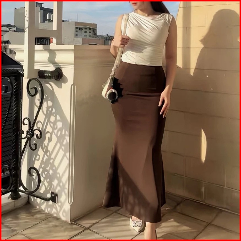 Humaica - Lunar Mermaid Skirt - Scuba Premium Rok Flare Wanita Basic Polos - Maxi Midi Rok Panjang Wanita Adem Melar Ele