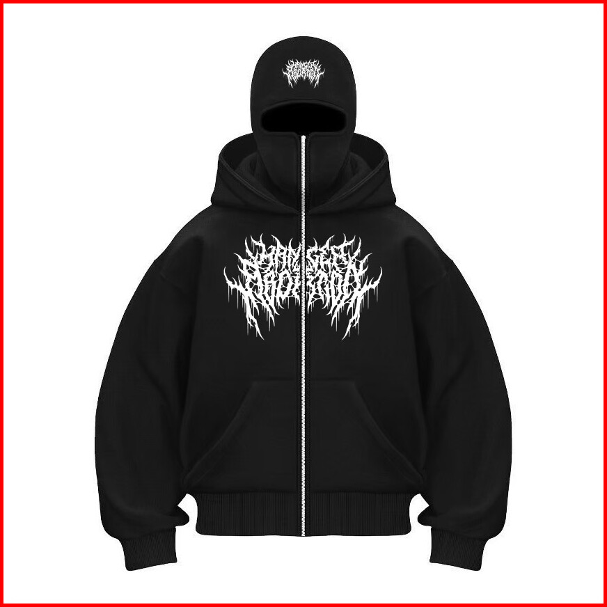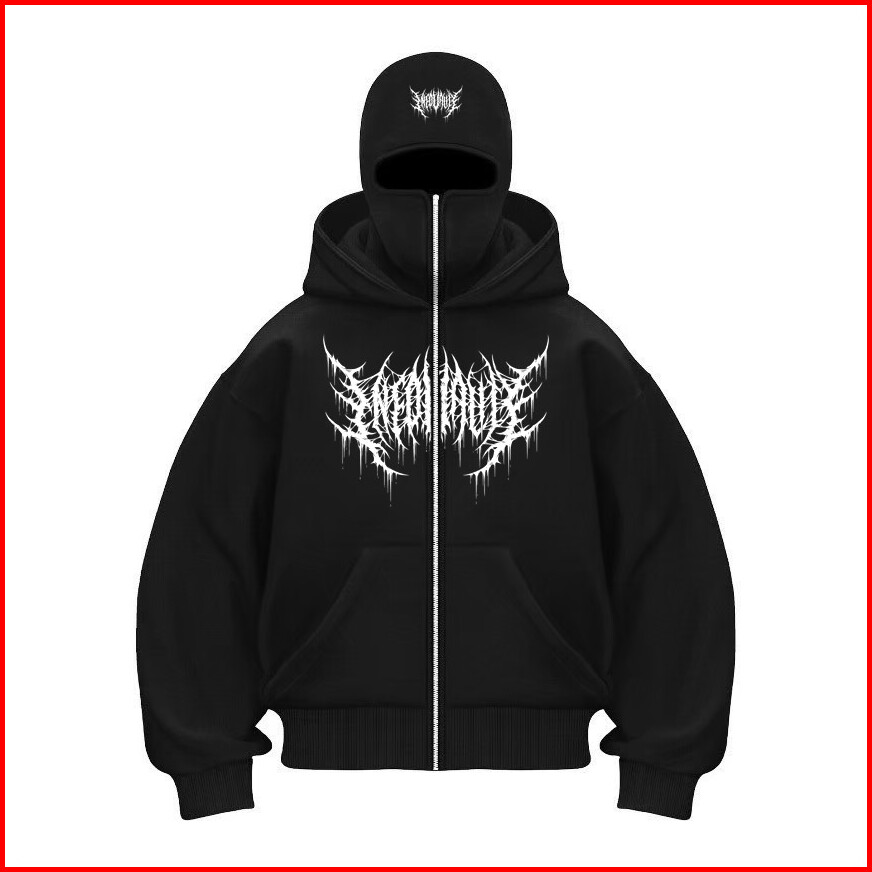 Hoodie Balaclava Pria Metal Zipper Jaket Boxy Hitam