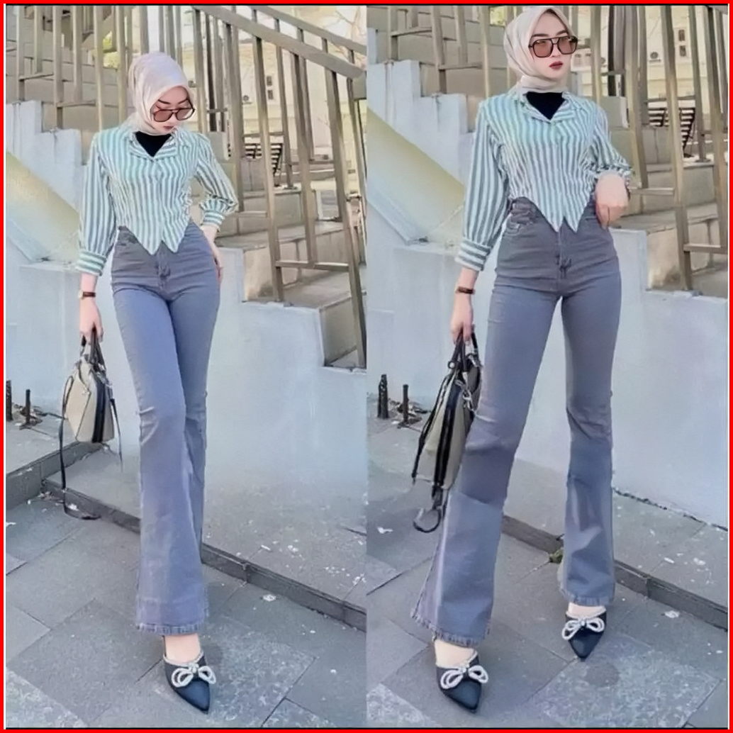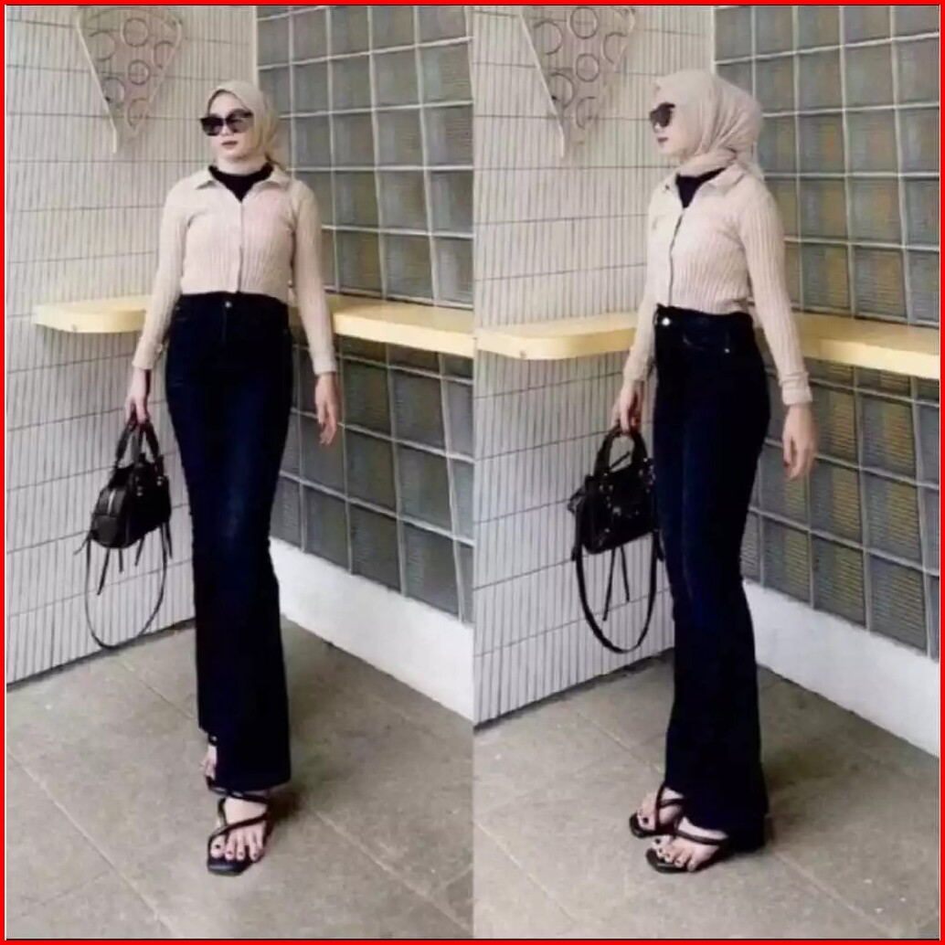 Luxeblue Highwaist Cutbray Jeans Premium - Celana Cutbray Wanita Melar Highwaist Vintage Polos