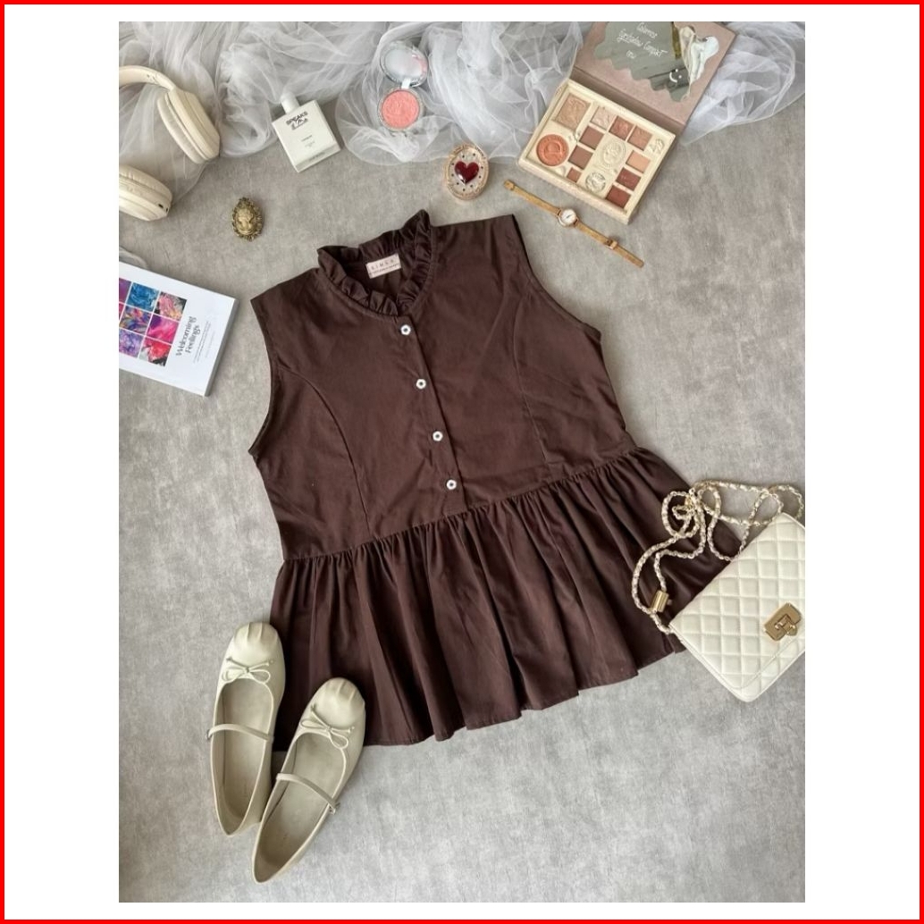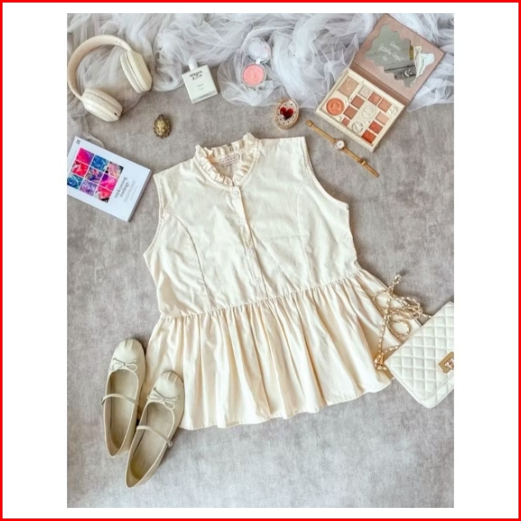 April Inner Blouse Inner Tanpa Lengan Blouse Ruflle Inner Katun Nyaman Inner Busui Friendly