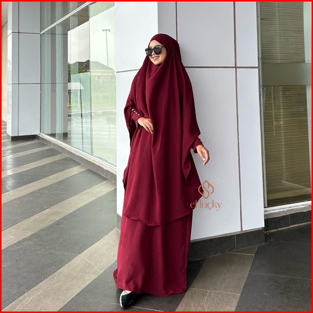 Abaya Premium Wanita Polos Set Jumbo Kerudung French Khimar Umroh Haji Niqab - Dress Muslim Elegan Syari Maisa