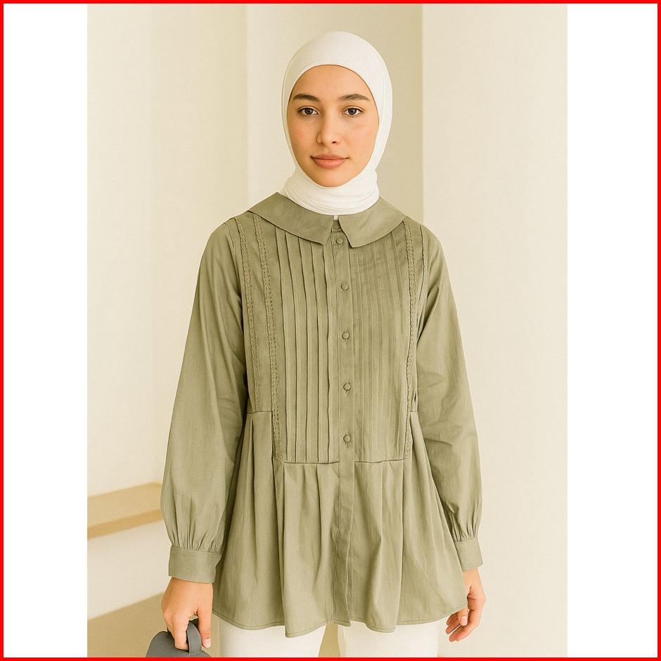 Atasan Tunik Renda Wanita Kekinian Premium Kemeja Blouse Kancing Depan Korean Style -ersya Blouse