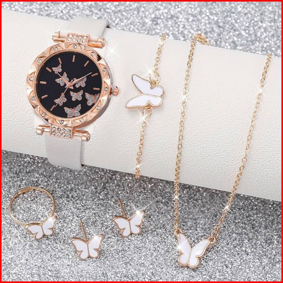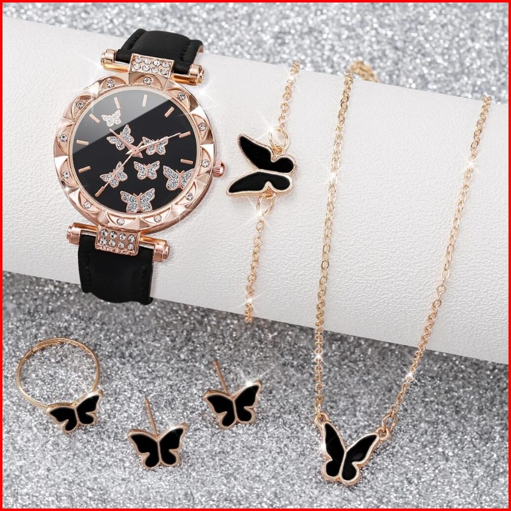 Jam Tangan Wanita Fashion Set 5in1 Free Box Jam Tangan Wanita Hadiah Paket Lengkap
