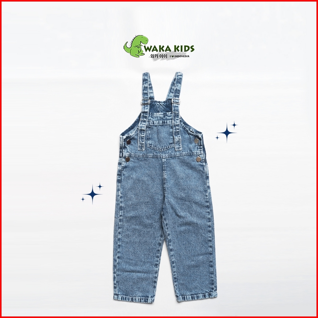 Wakakids Overall Jeans Anak Baju Kodok Celana Panjang Jumpsuit Denim Snow Wash 056 Vench