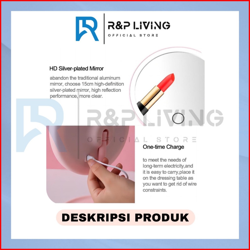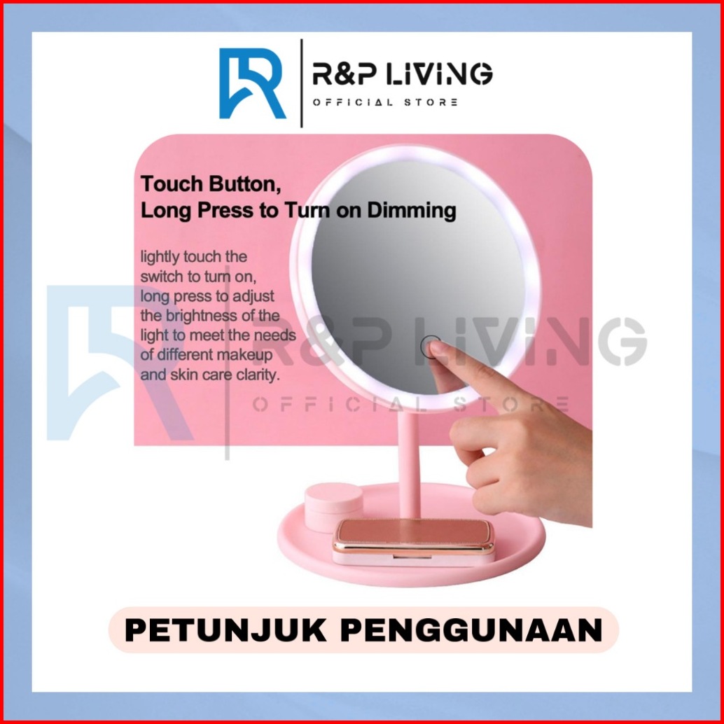 R P - Sx Recharge Cermin Rias Atas Meja Portabel Dengan Lampu Led Layar Sentuh Berputar 90 Derajat