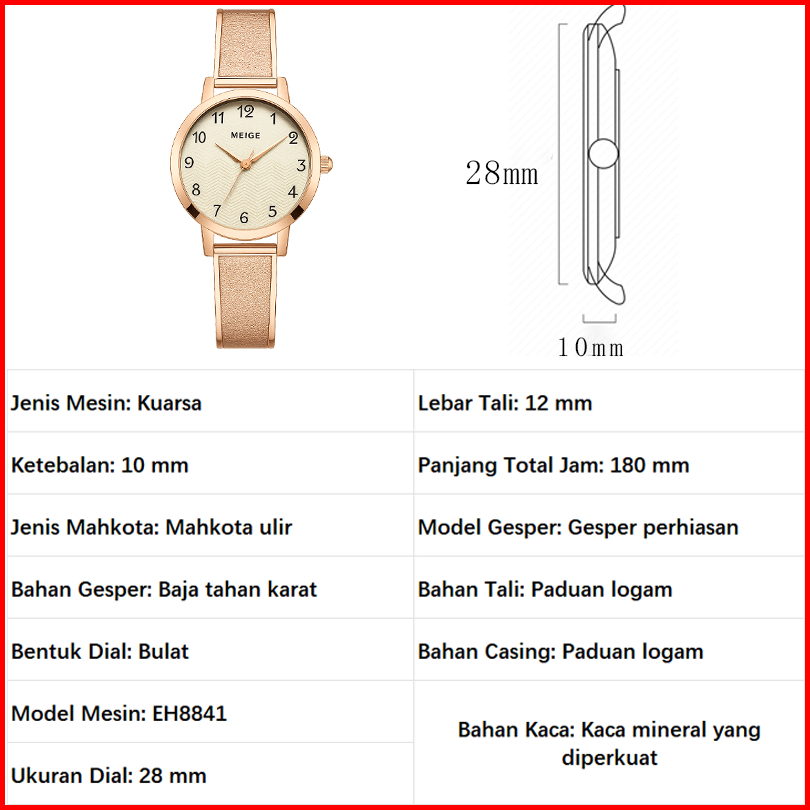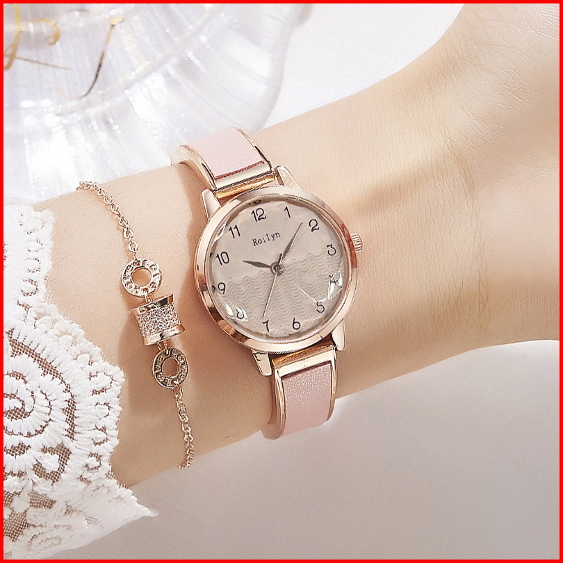 Jam Tangan Wanita Original Dengan Desain Tahan Air Menggunakan Tali Kulit Dan Stainless Steel