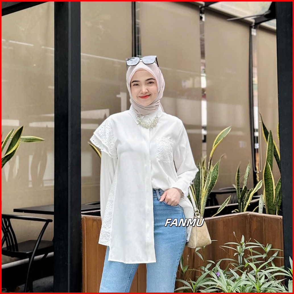 Fanmu Blouse Putih Embroidery Wanita Baju Kemeja Putih Kerja Wanita Terbaru