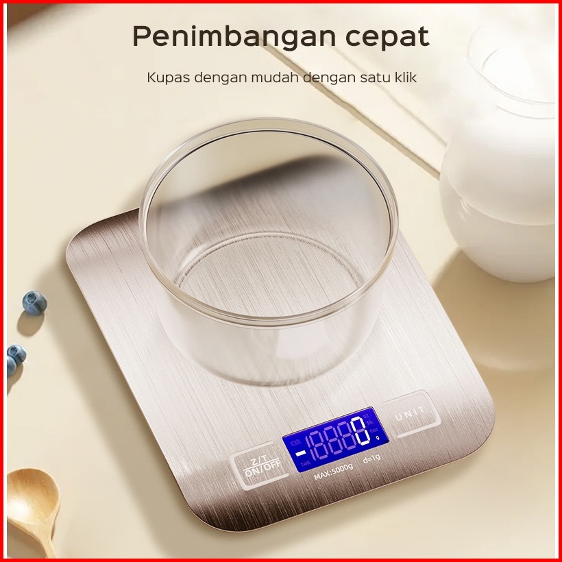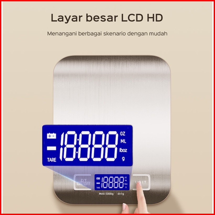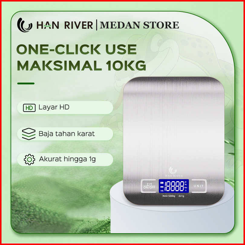 Han River Medan Timbangan Digital Dapur 5kg Berbahan Stainless Steel Lcd Display
