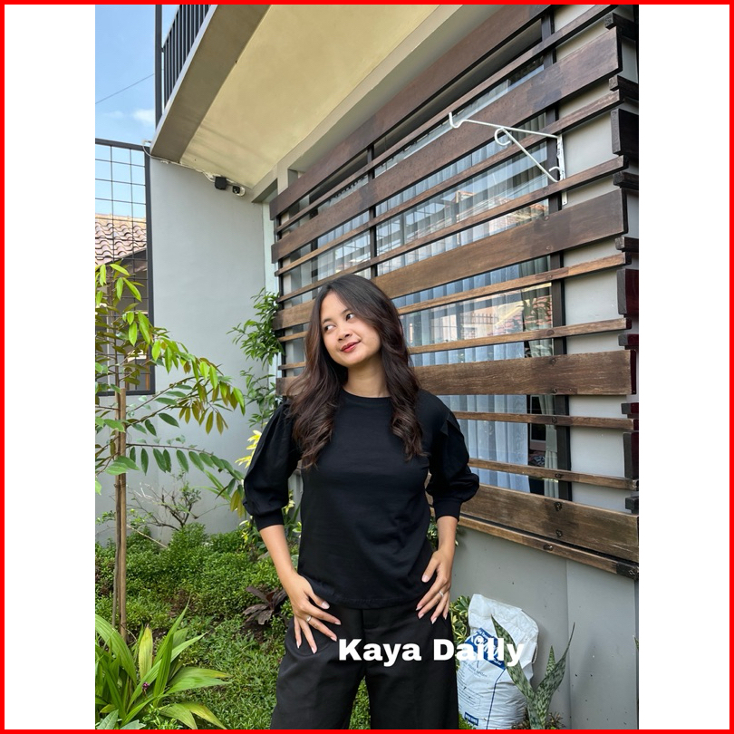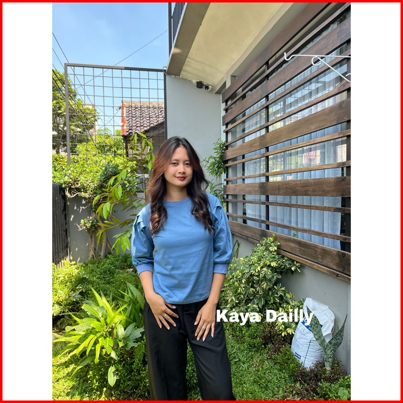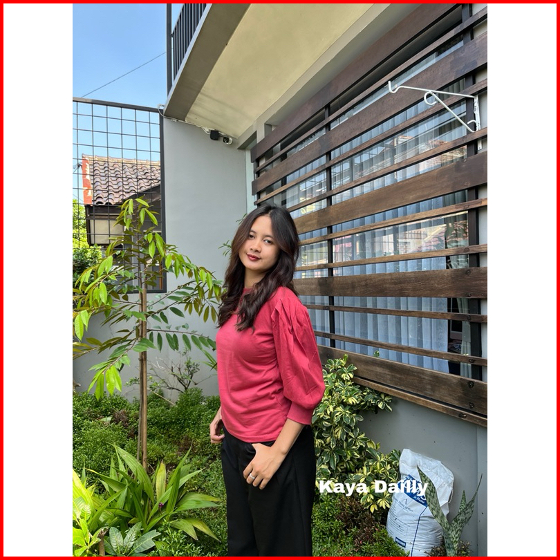 Kaya Atasan Muslimah Lengan 3 4 Rampel Simple Nyaman Lembut Tshirt Panjang Top Blouse Balon Bahan Cotton Combbad 30s