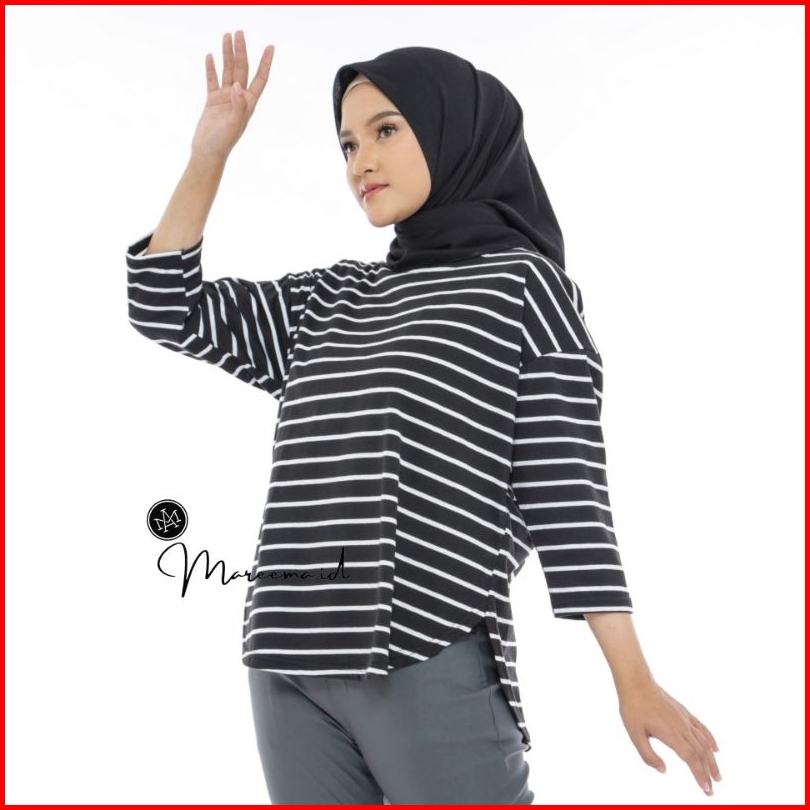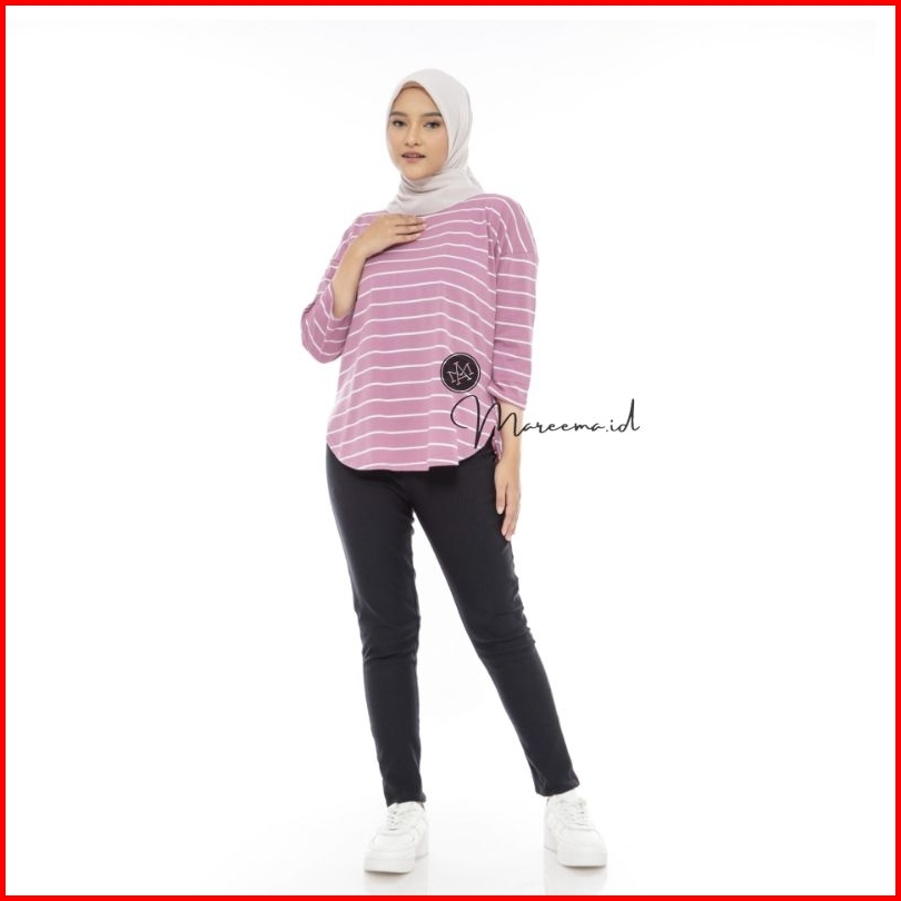 Atasan Baju Kaos Salur Oversized Wanita Muslim Blouse Top Basic Polos Premium Terbaru Kekinian